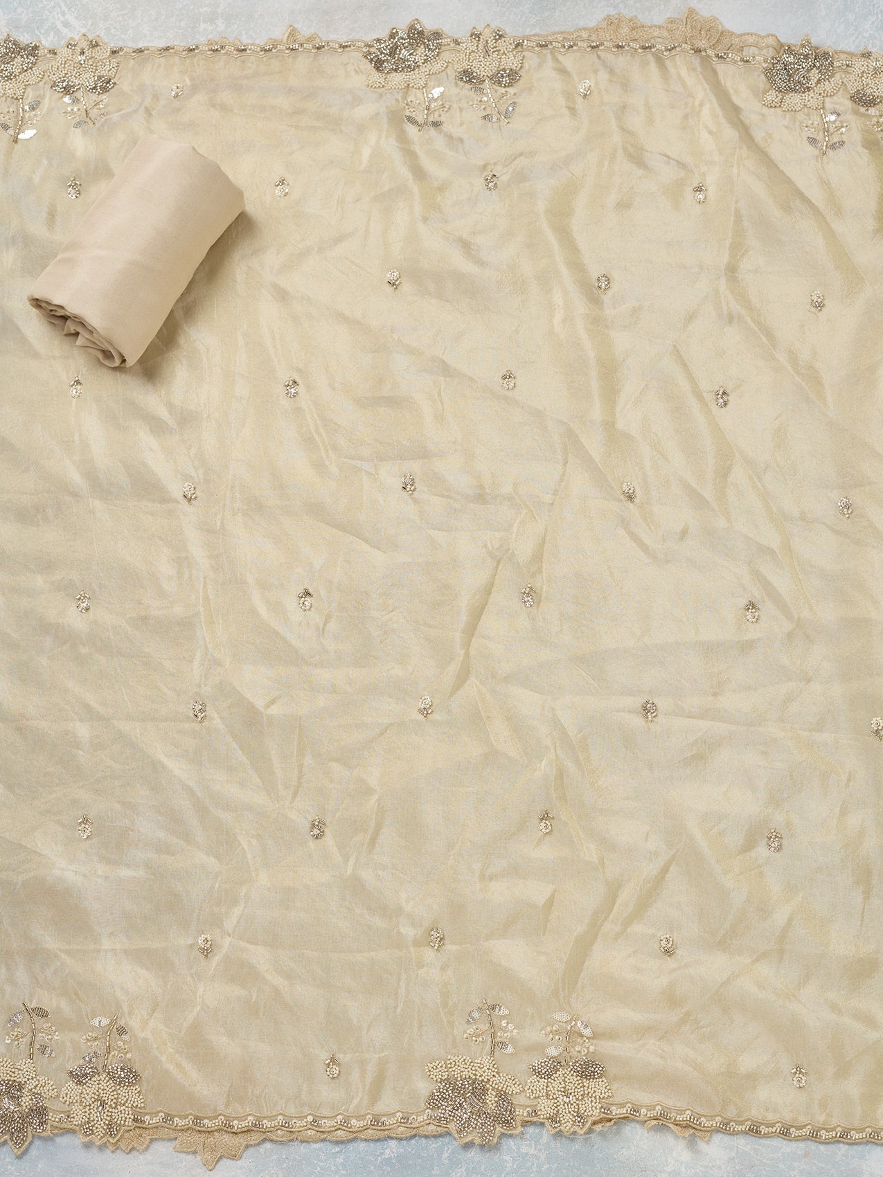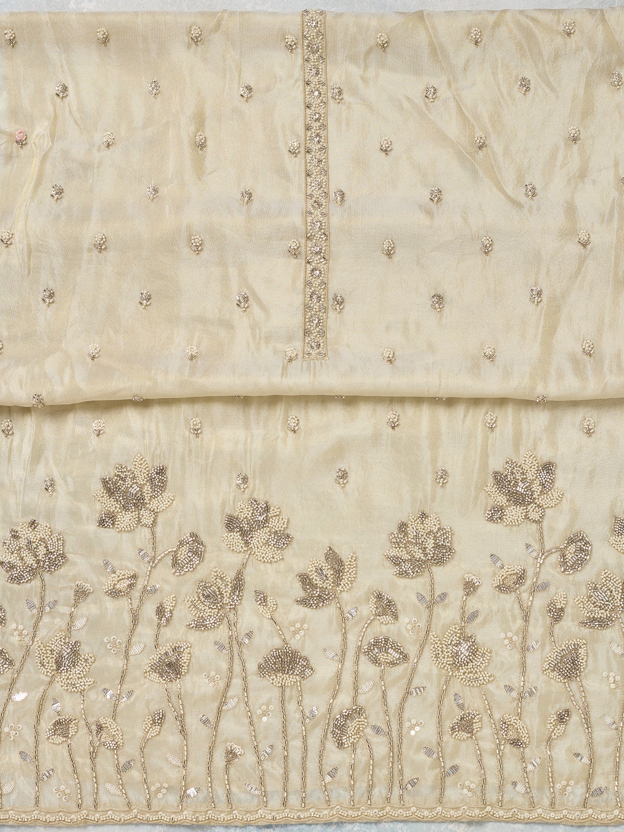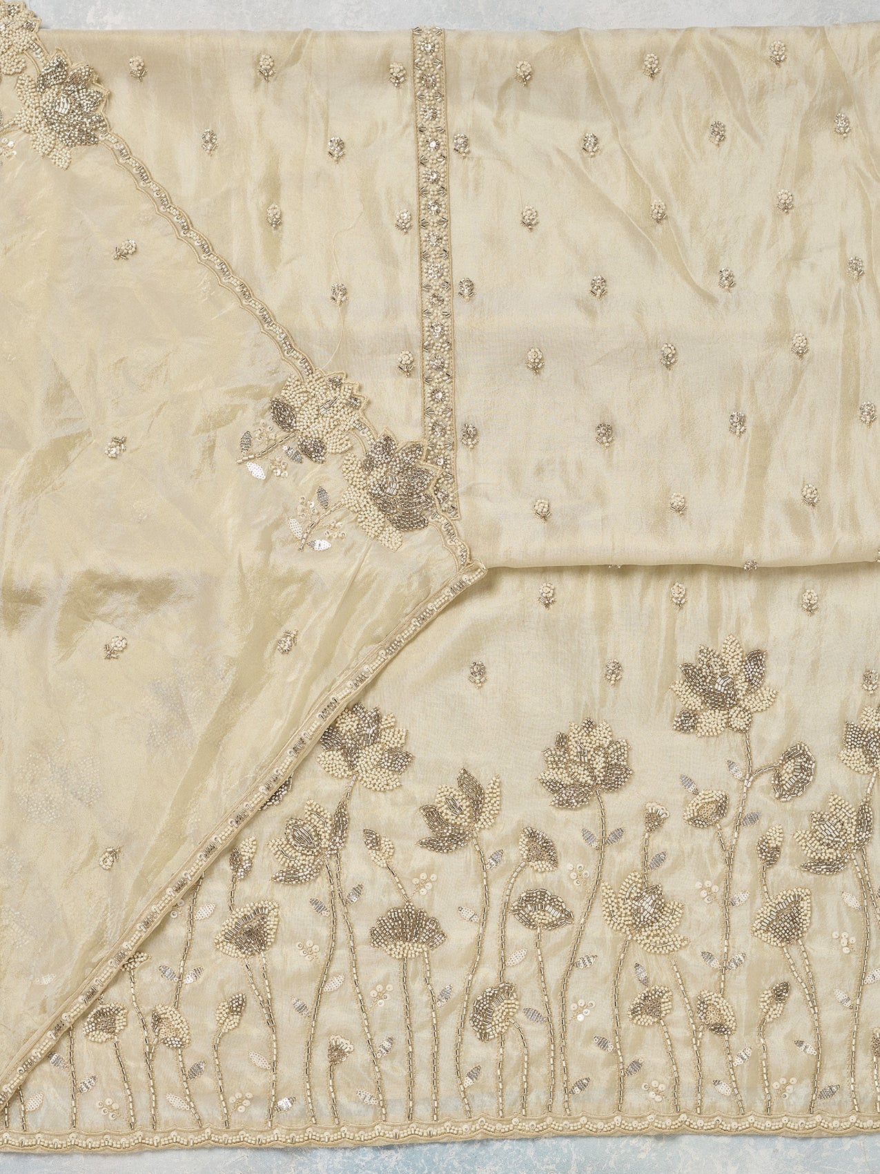 Beige Cutdana Tissue Unstitched Salwar Suit