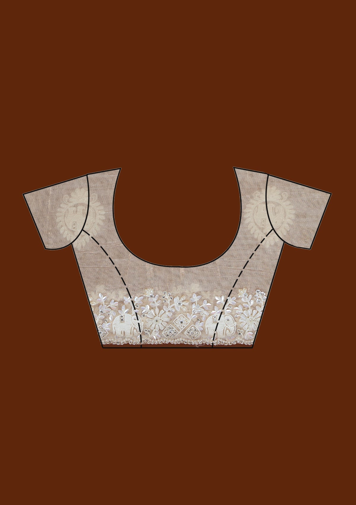 Beige Saree in Tissue fabric. The Saree is elevated with Pearlwork embroidery. It comes with an Unstitched blouse. Comes with the Koskii promise of premium quality.