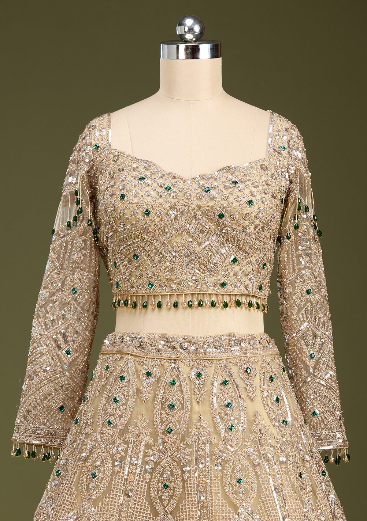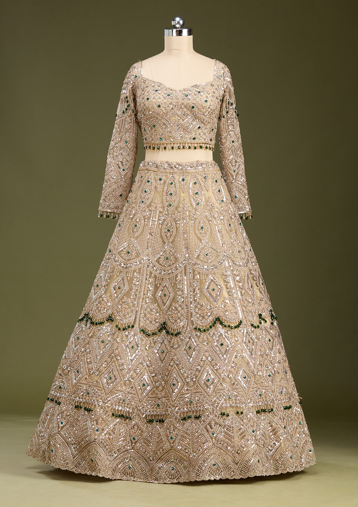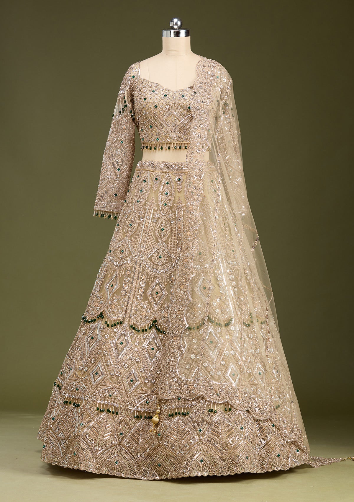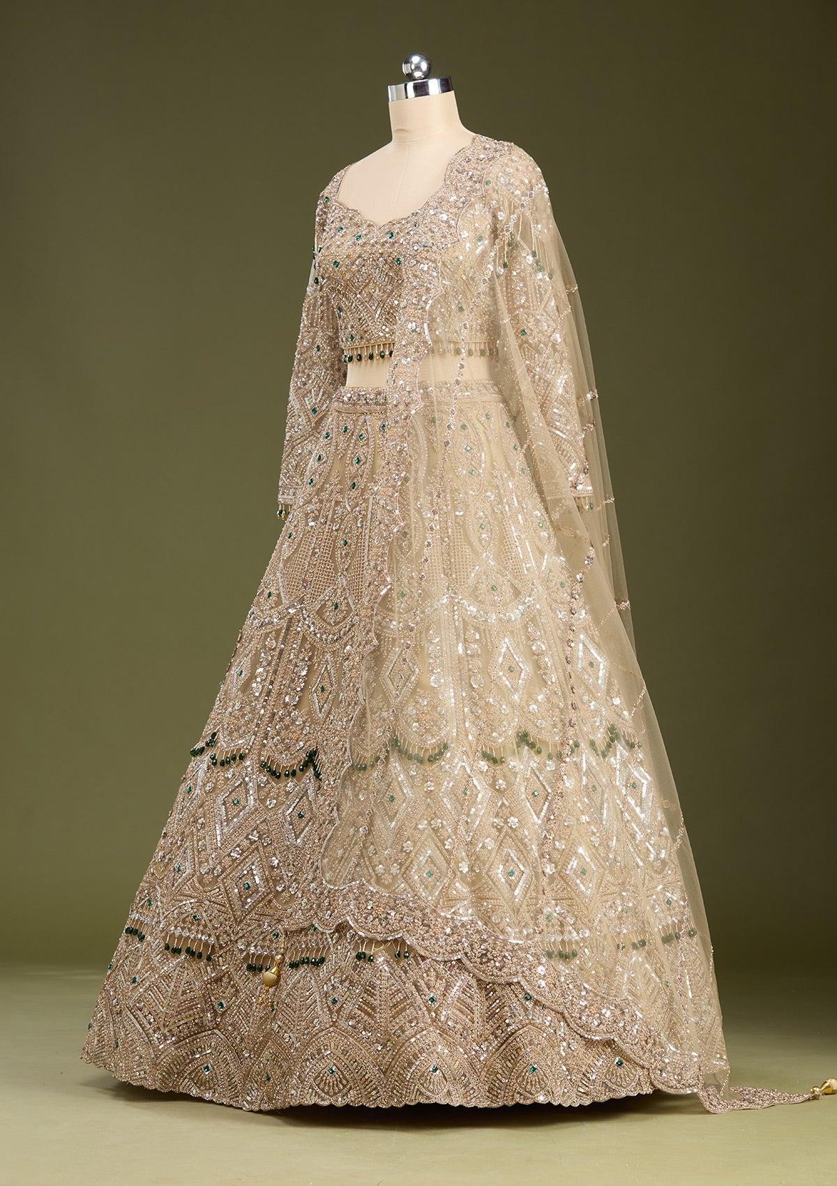 Beige Sequins Net Readymade Lehenga