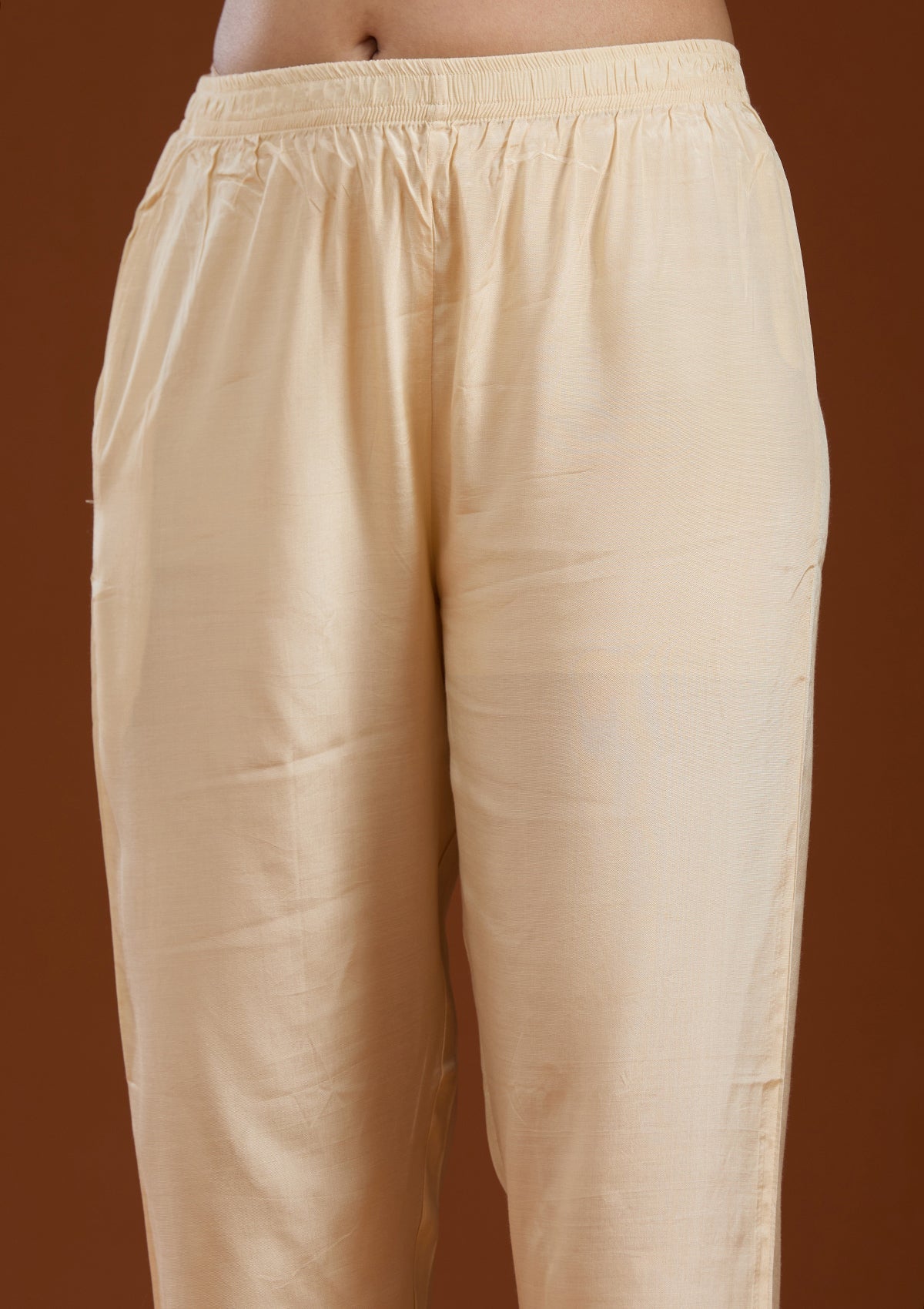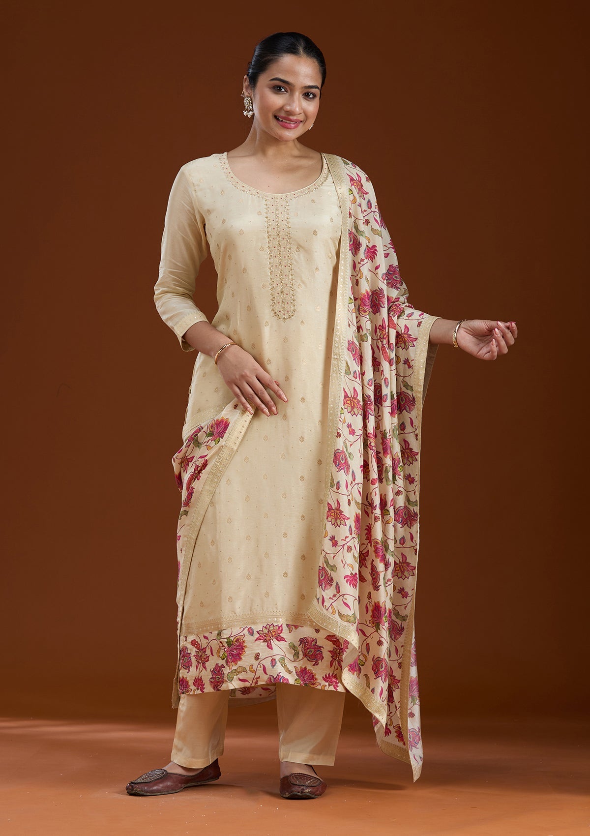 Beige Sequins Soft Raw Silk Readymade Salwar Suit-koskii