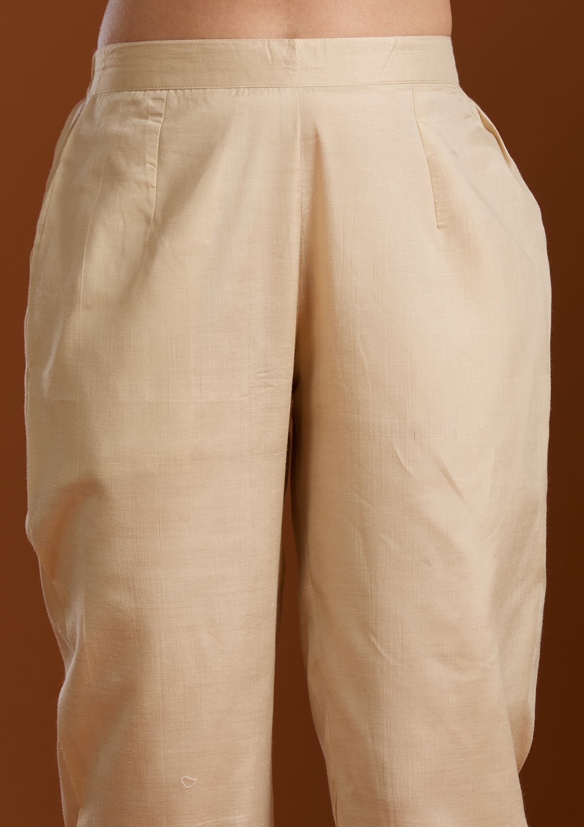 Beige Salwar Suit in Chanderi fabric. The Salwar Suit is embellished with Threadwork embroidery. Accompanied with a bottom and dupatta. Comes with the Koskii promise of premium quality.