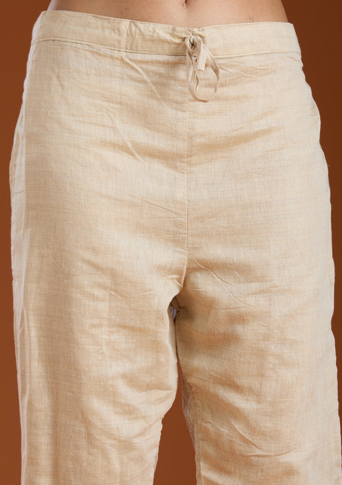Beige Salwar Suit in Chanderi fabric. The Salwar Suit is embellished with Threadwork embroidery. Accompanied with a bottom and dupatta. Comes with the Koskii promise of premium quality.