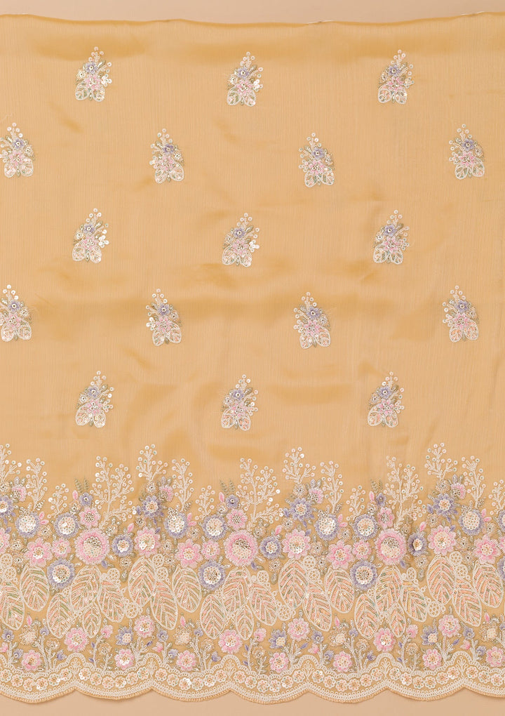 Beige Threadwork Semi Crepe Unstitched Salwar Suit