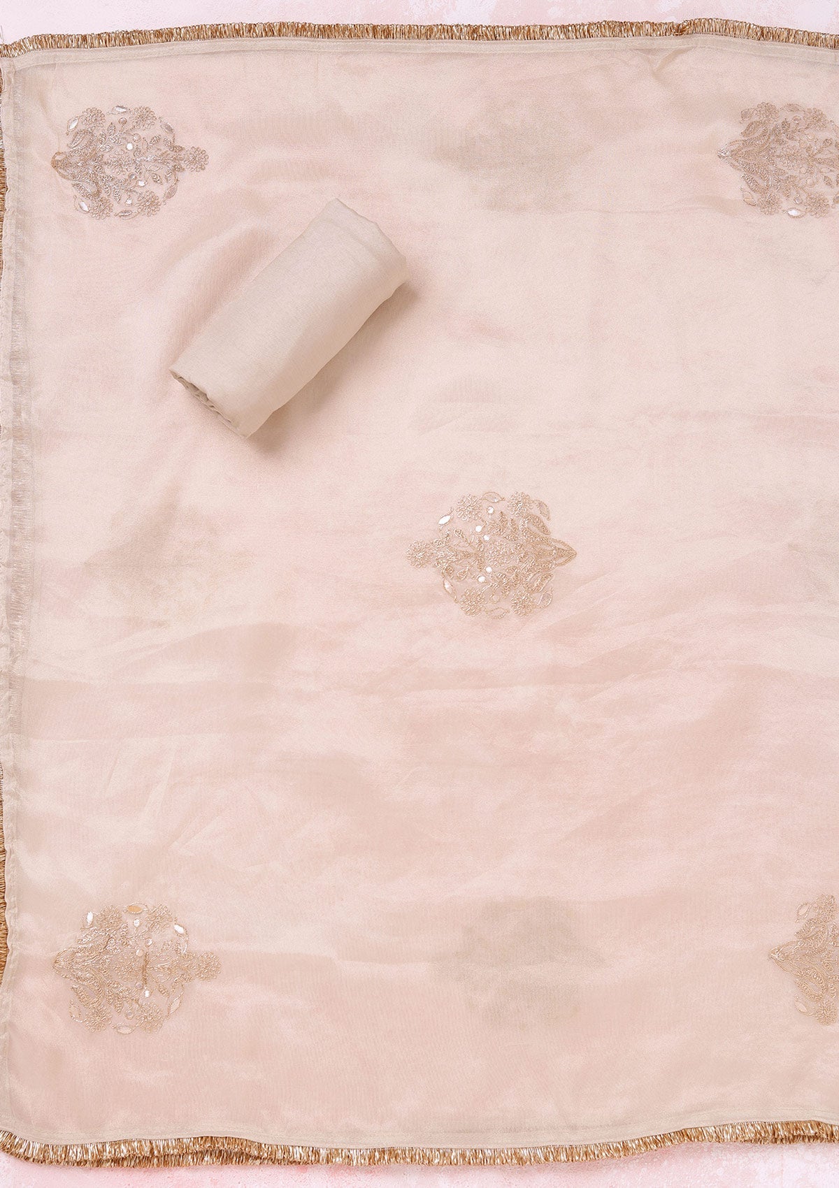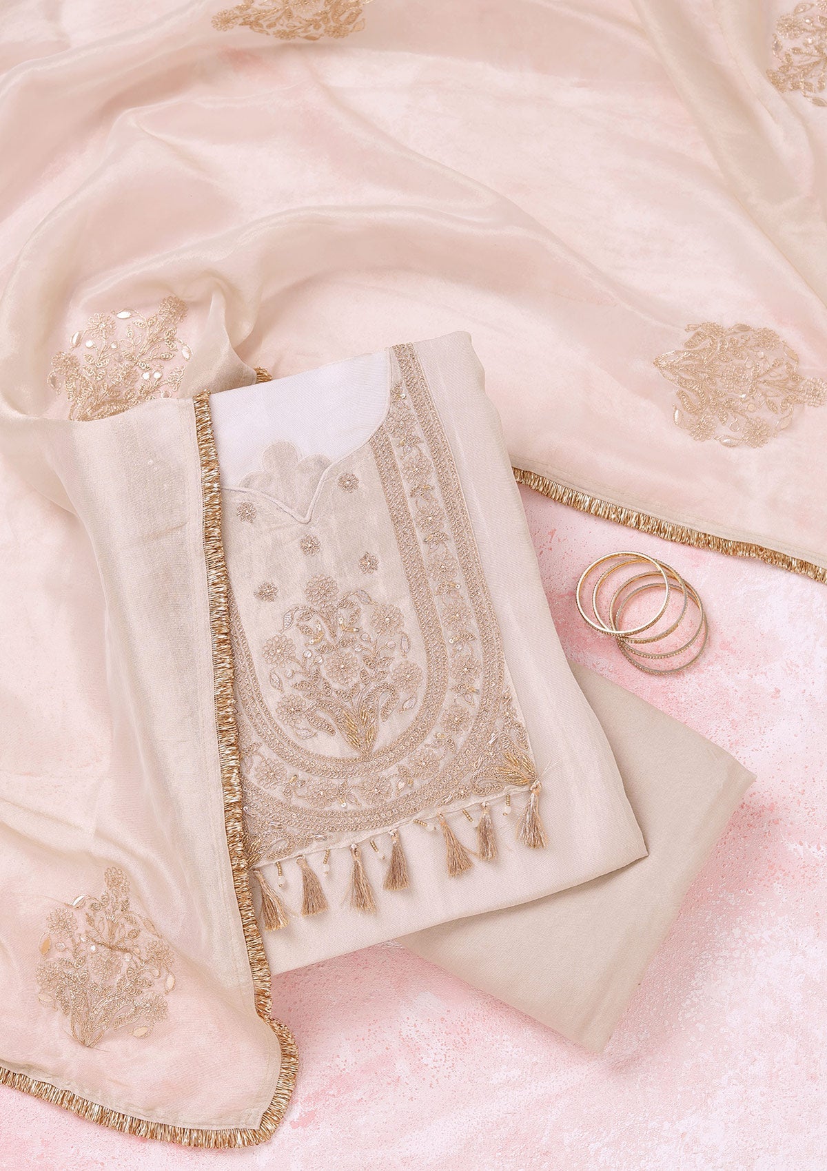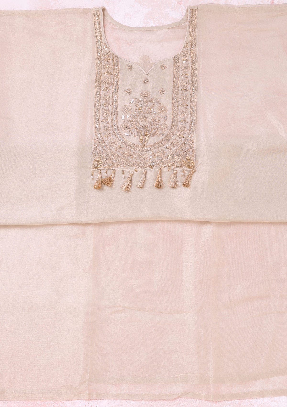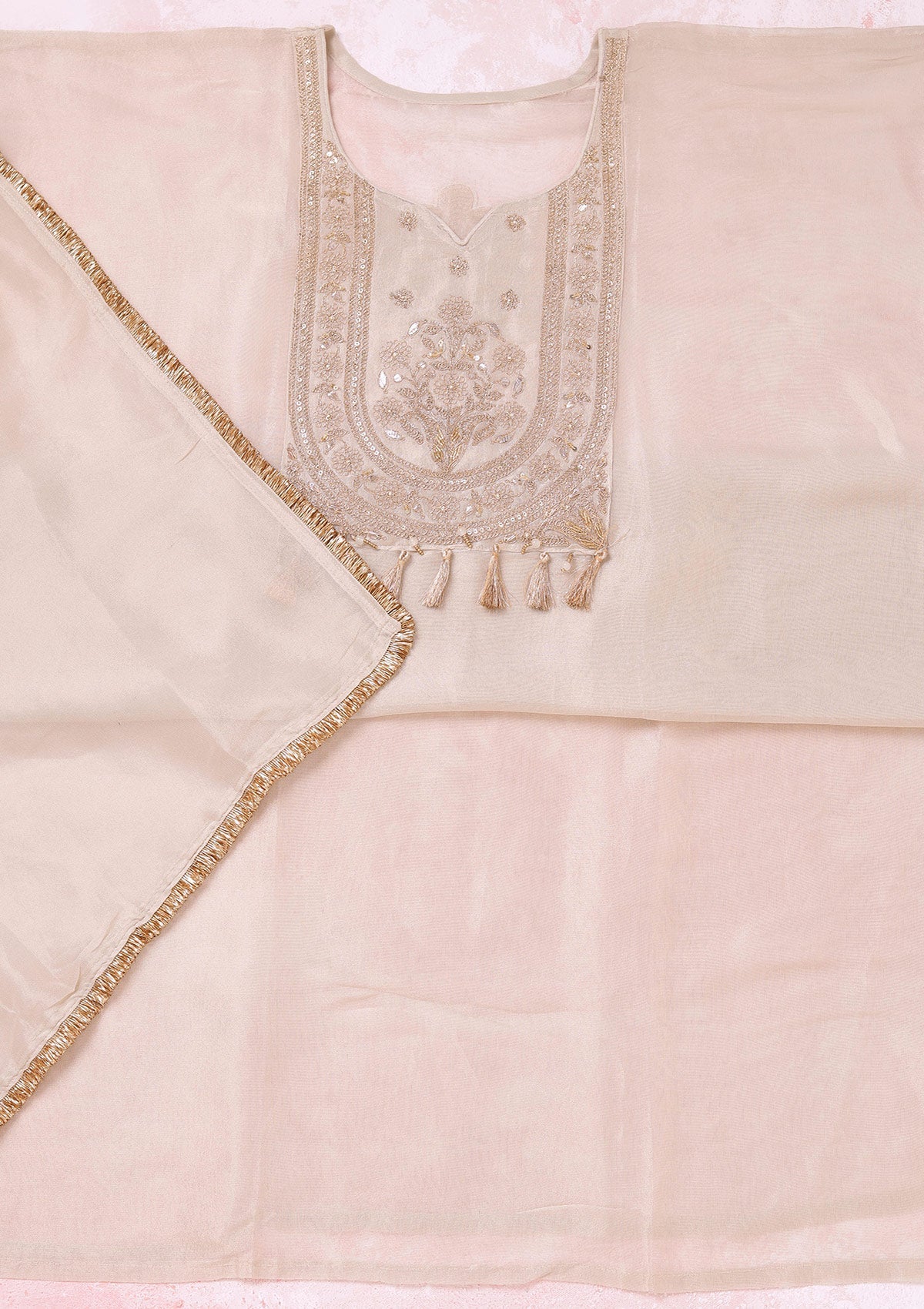 Beige Zariwork (Gold) Tissue Unstitched Salwar Suit