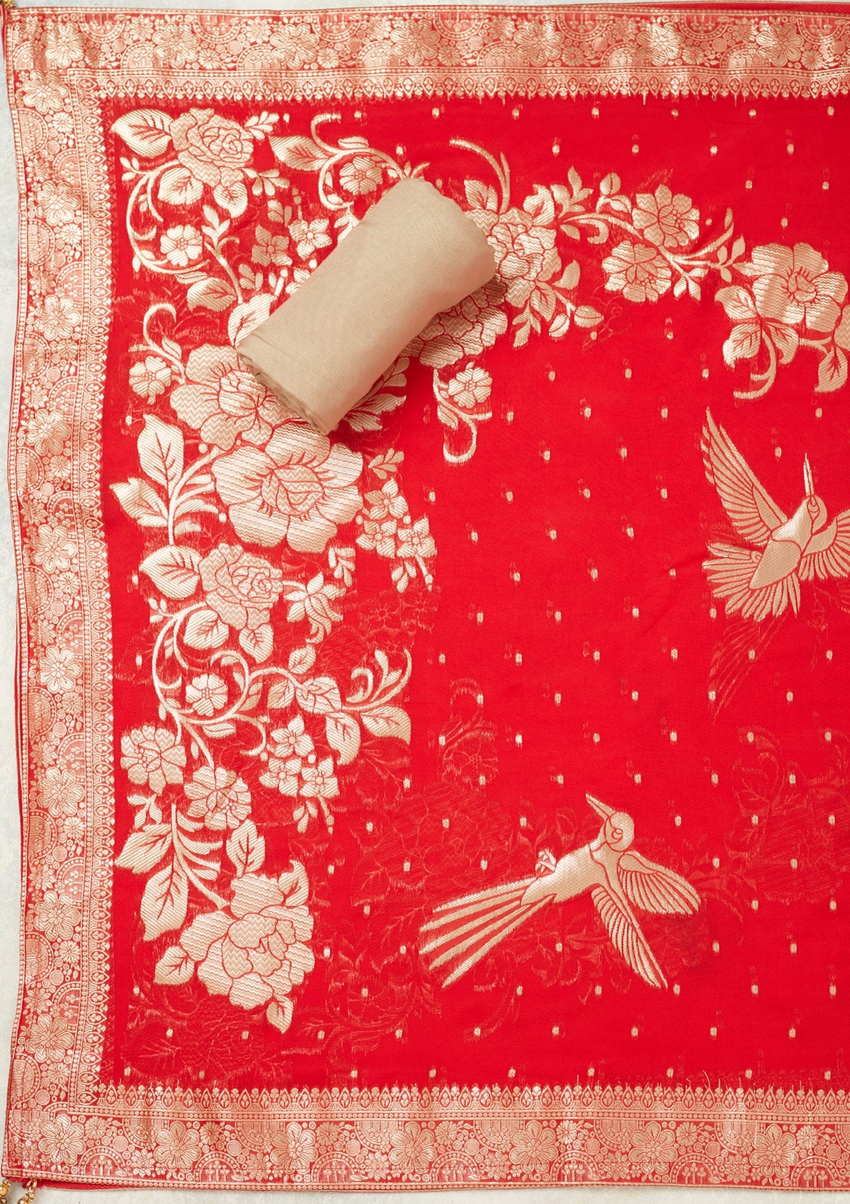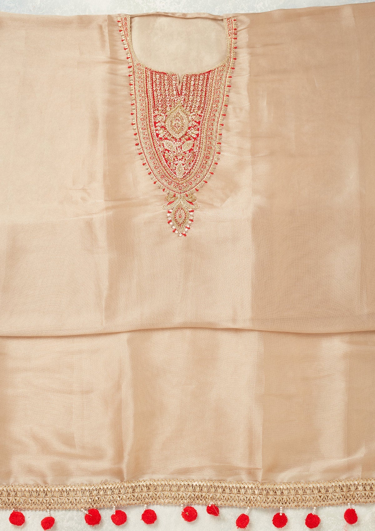 Beige Zariwork (Gold) Tissue Unstitched Salwar Suit