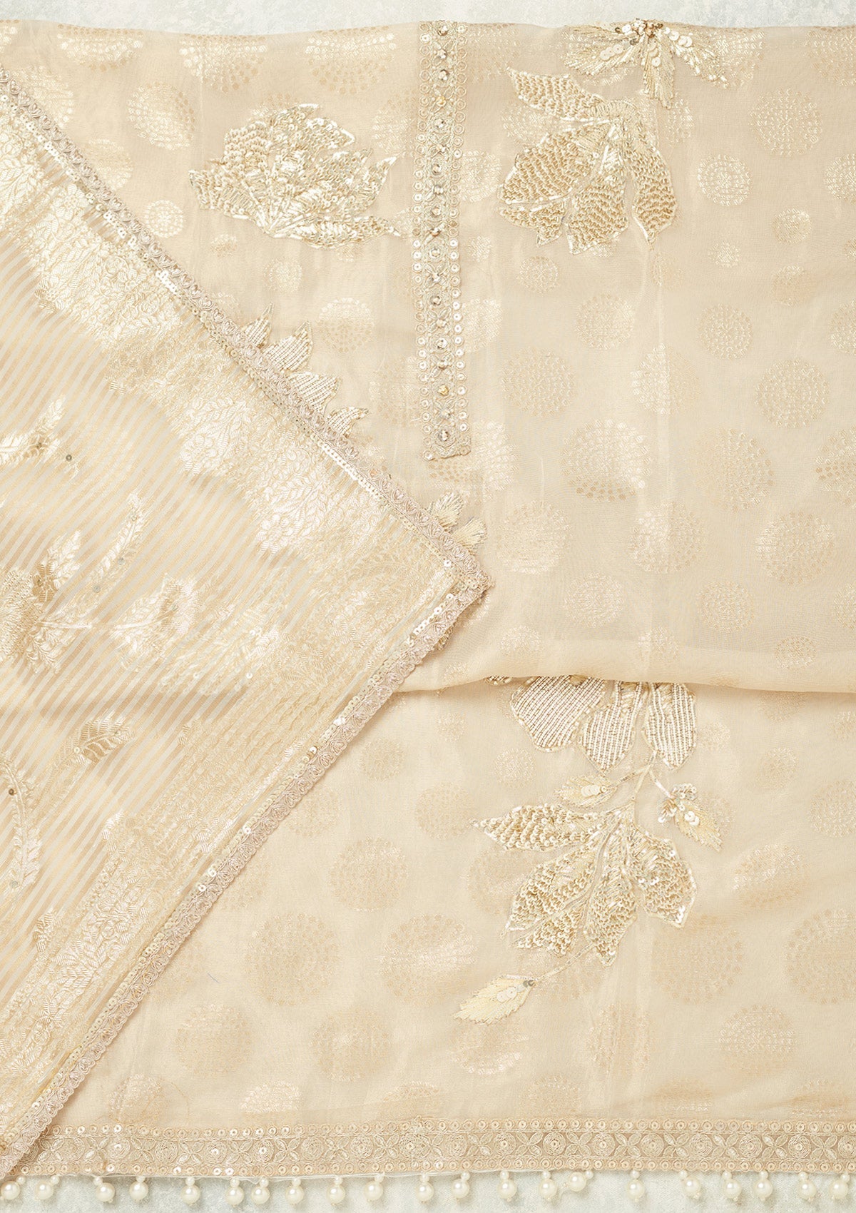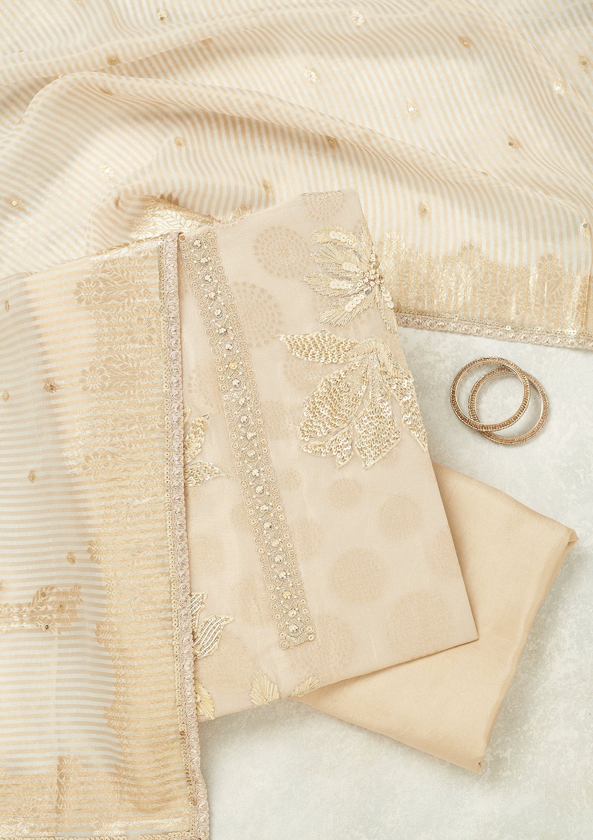 Beige Zariwork (Gold) Tissue Unstitched Salwar Suit