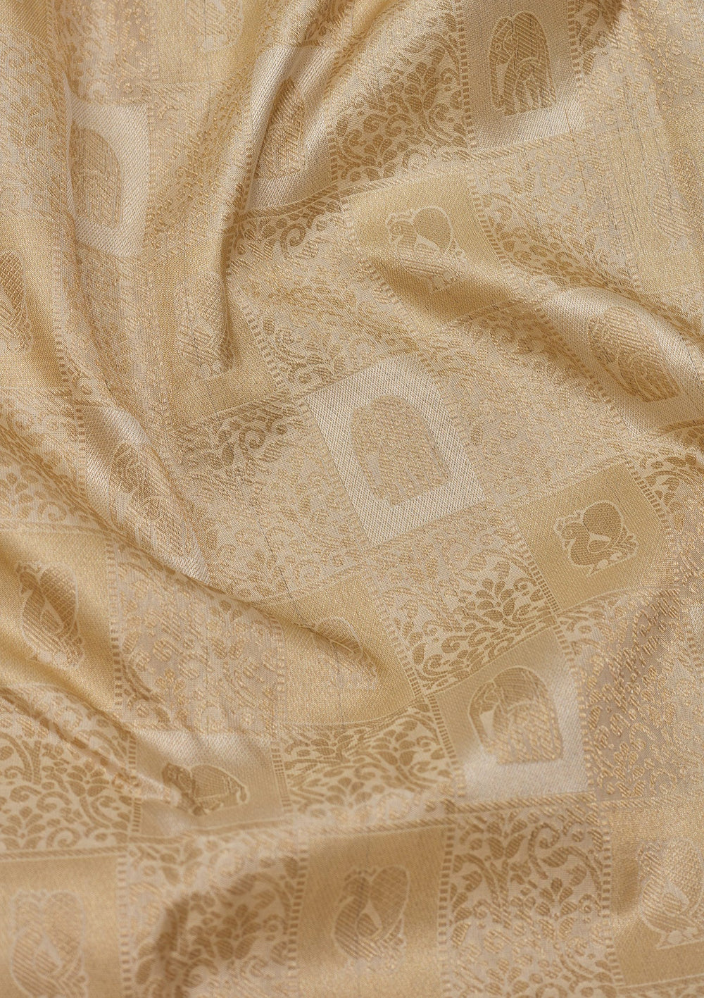 Beige Saree in Pure Silk fabric. The Saree is elevated with Zariwork embroidery. It comes with an Unstitched blouse. Comes with the Koskii promise of premium quality.