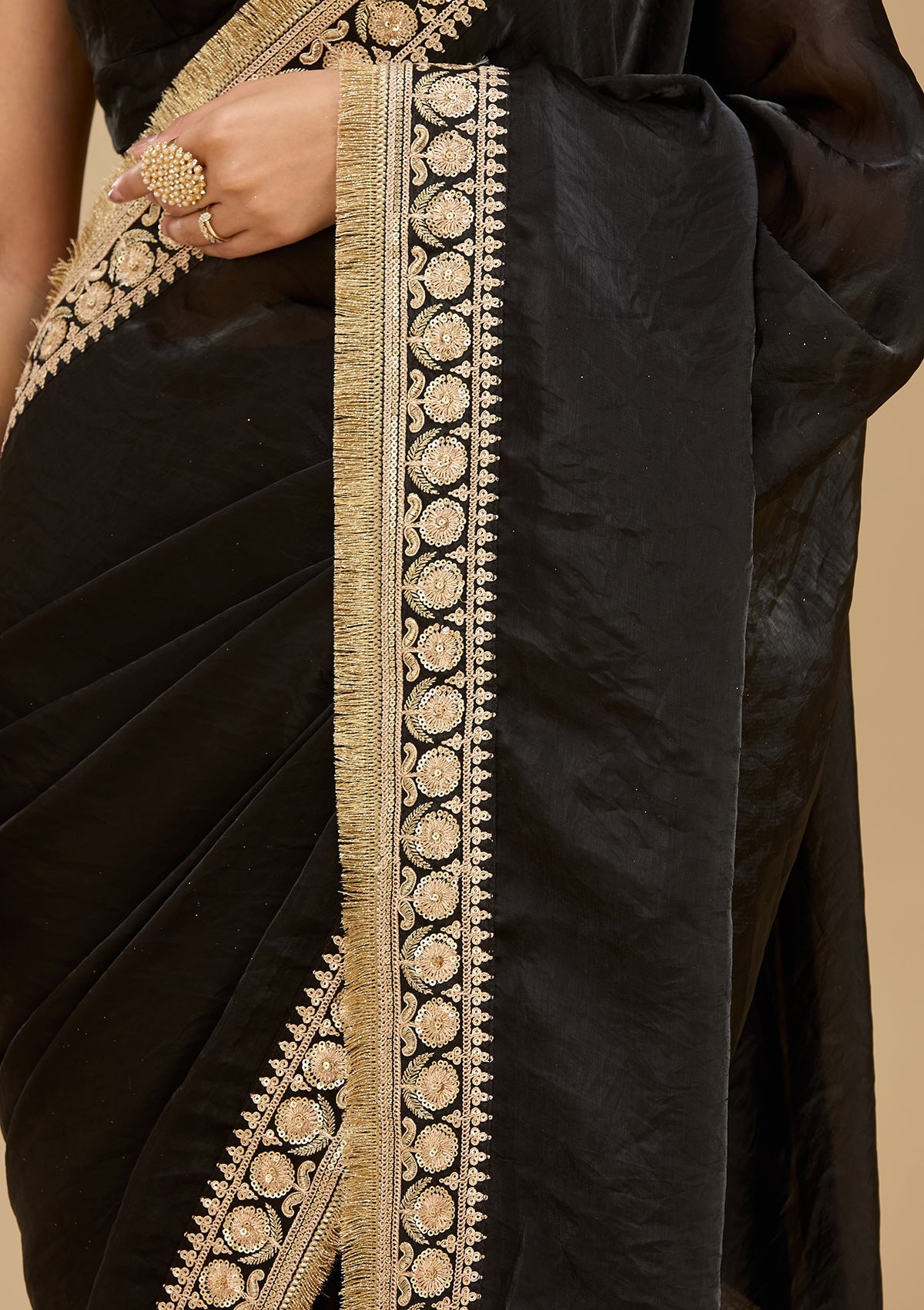 Black Saree in Tissue fabric. The Saree is elevated with Cording embroidery. It comes with an Unstitched blouse. Comes with the Koskii promise of premium quality.