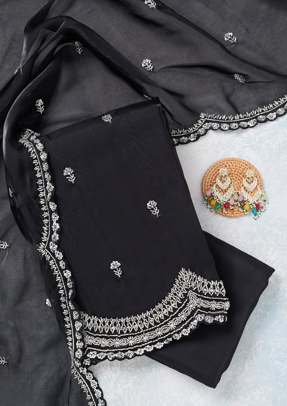 Black Cutdana Tissue Unstitched Salwar Suit