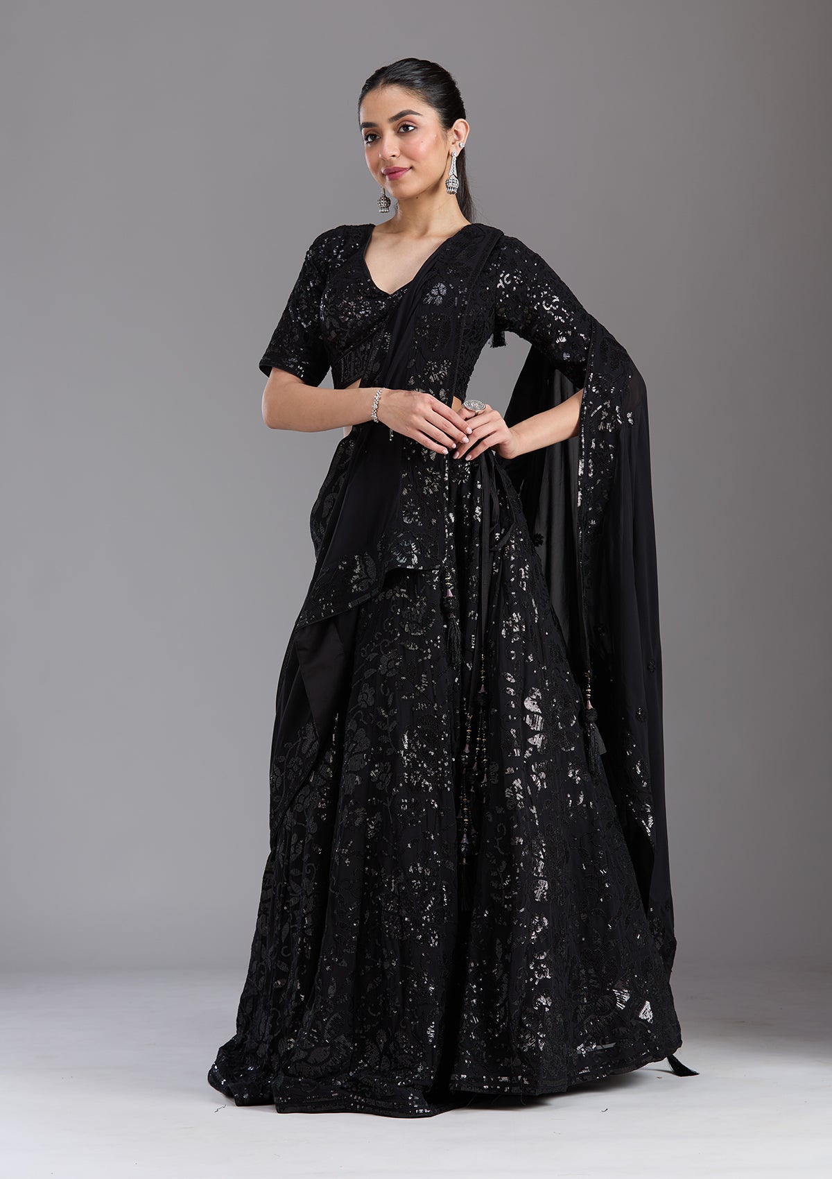 Black Sequins Georgette Readymade Lehenga