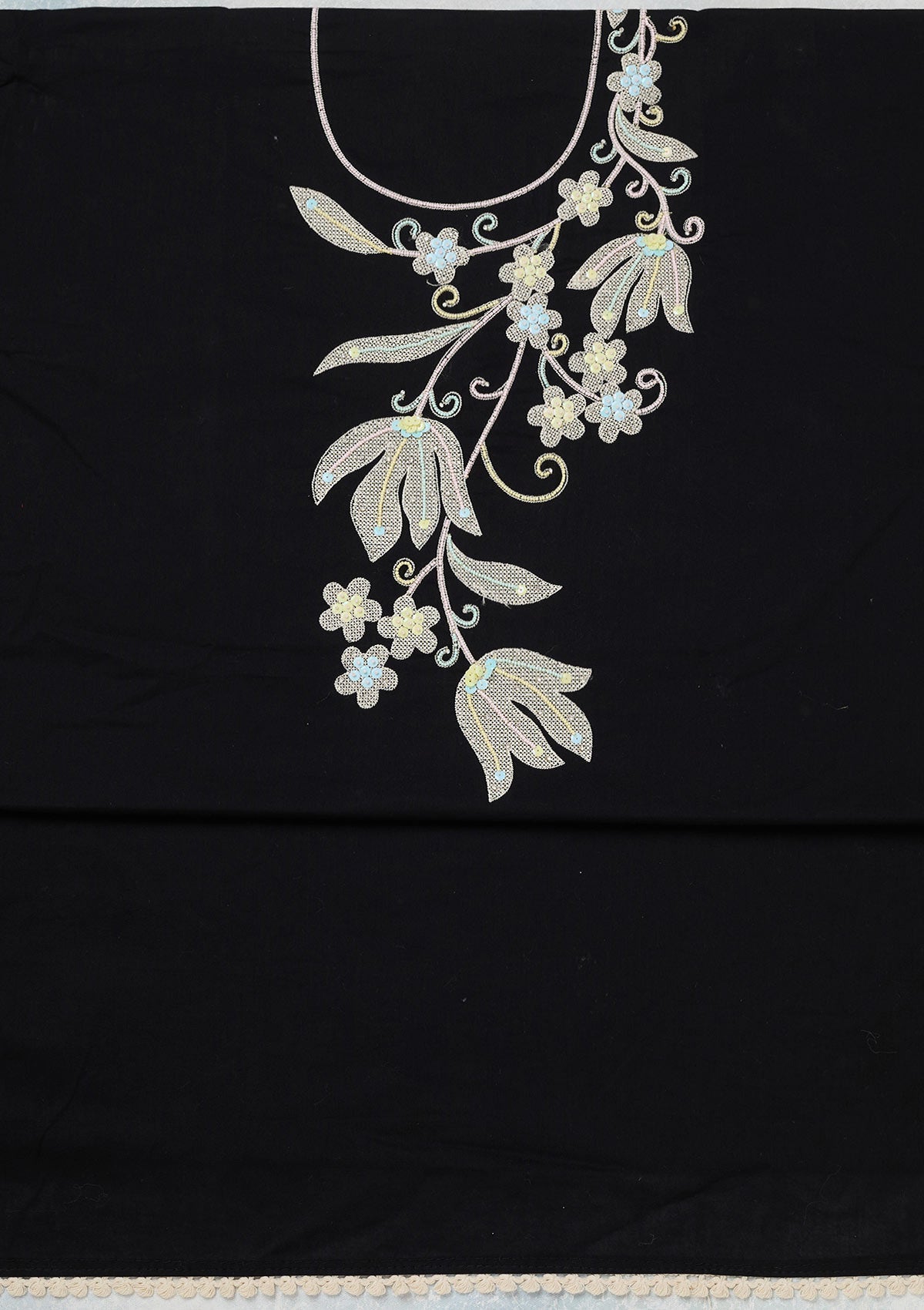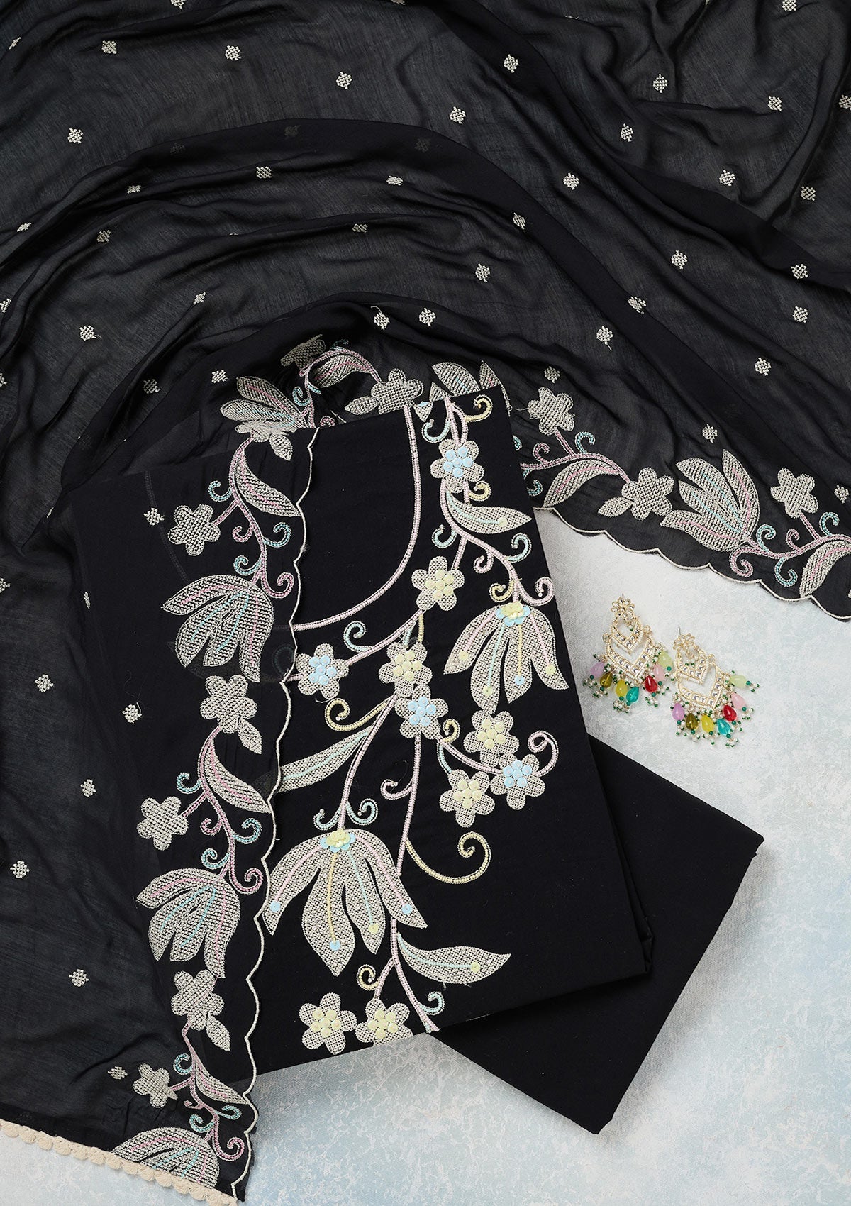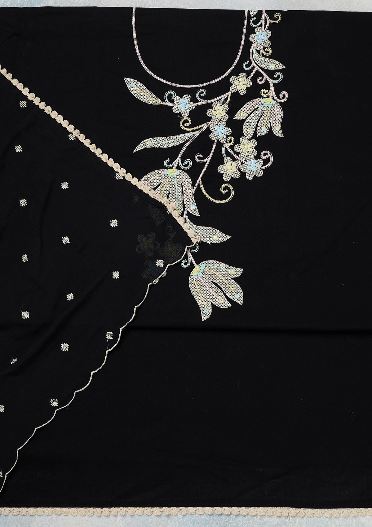 Black Threadwork Cotton Unstitched Salwar Suit