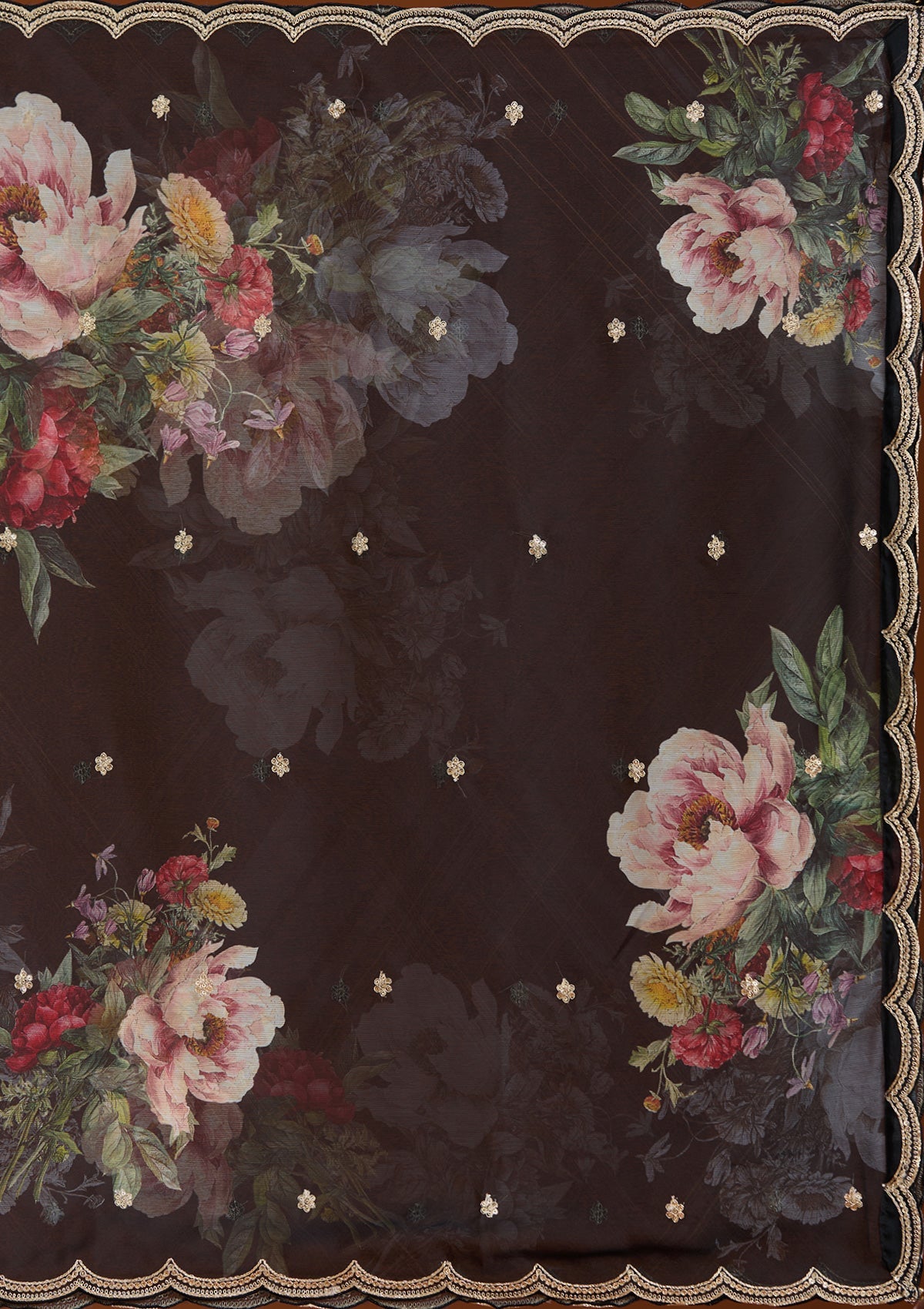 Black Salwar Suit in Soft Raw Silk fabric. The Salwar Suit is embellished with Zariwork (Gold) embroidery. Accompanied with a bottom and dupatta. Comes with the Koskii promise of premium quality.