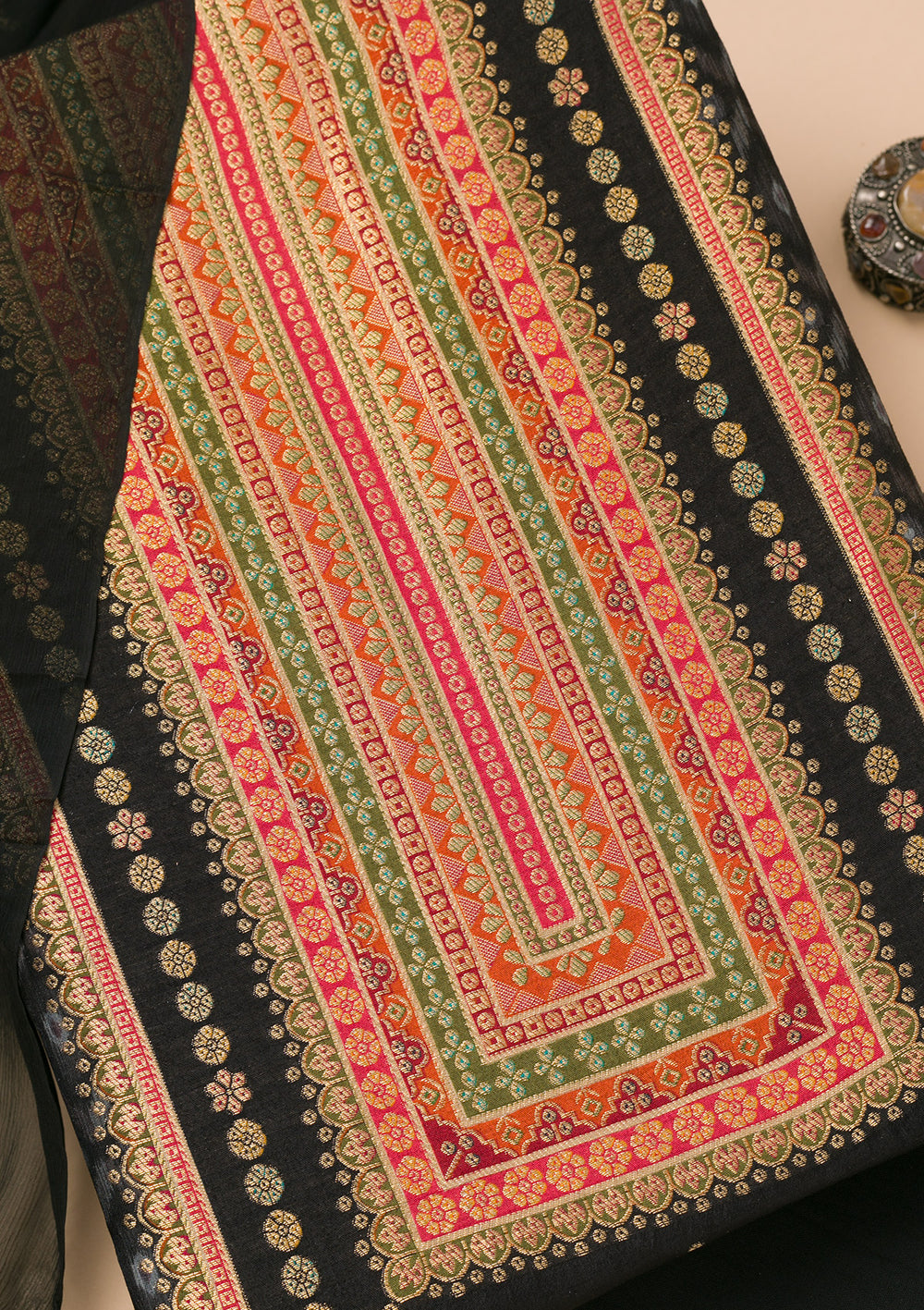 Black Zariwork Semi Crepe Unstitched Salwar Suit