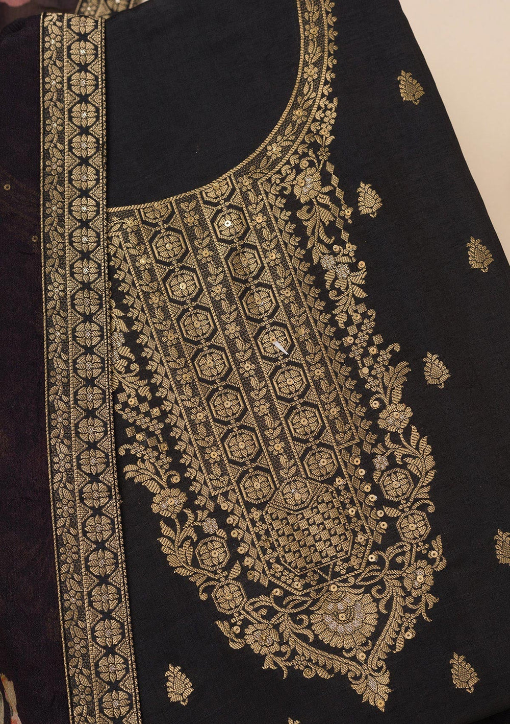 Black Zariwork Semi Crepe Unstitched Salwar Suit
