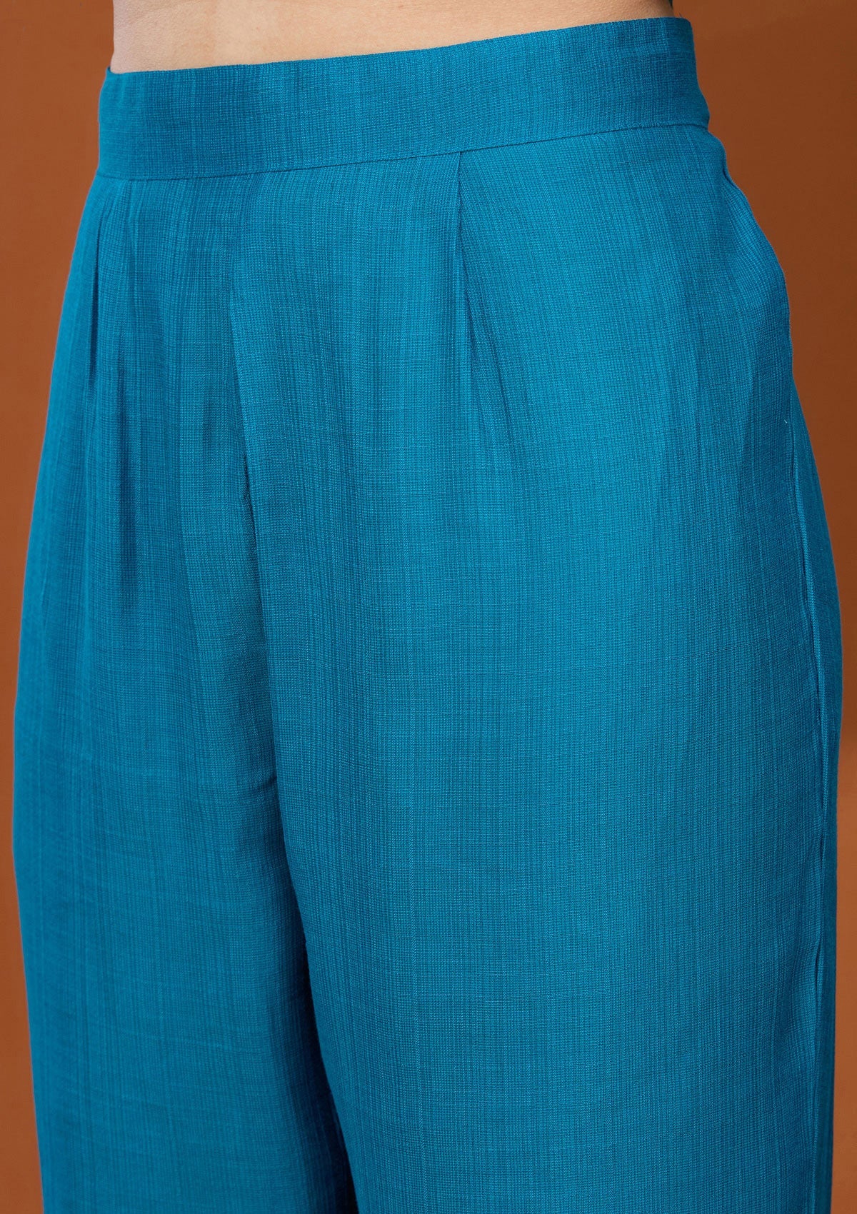Blue Salwar Suit in Chanderi fabric. The Salwar Suit is embellished with Threadwork embroidery. Accompanied with a bottom and dupatta. Comes with the Koskii promise of premium quality.