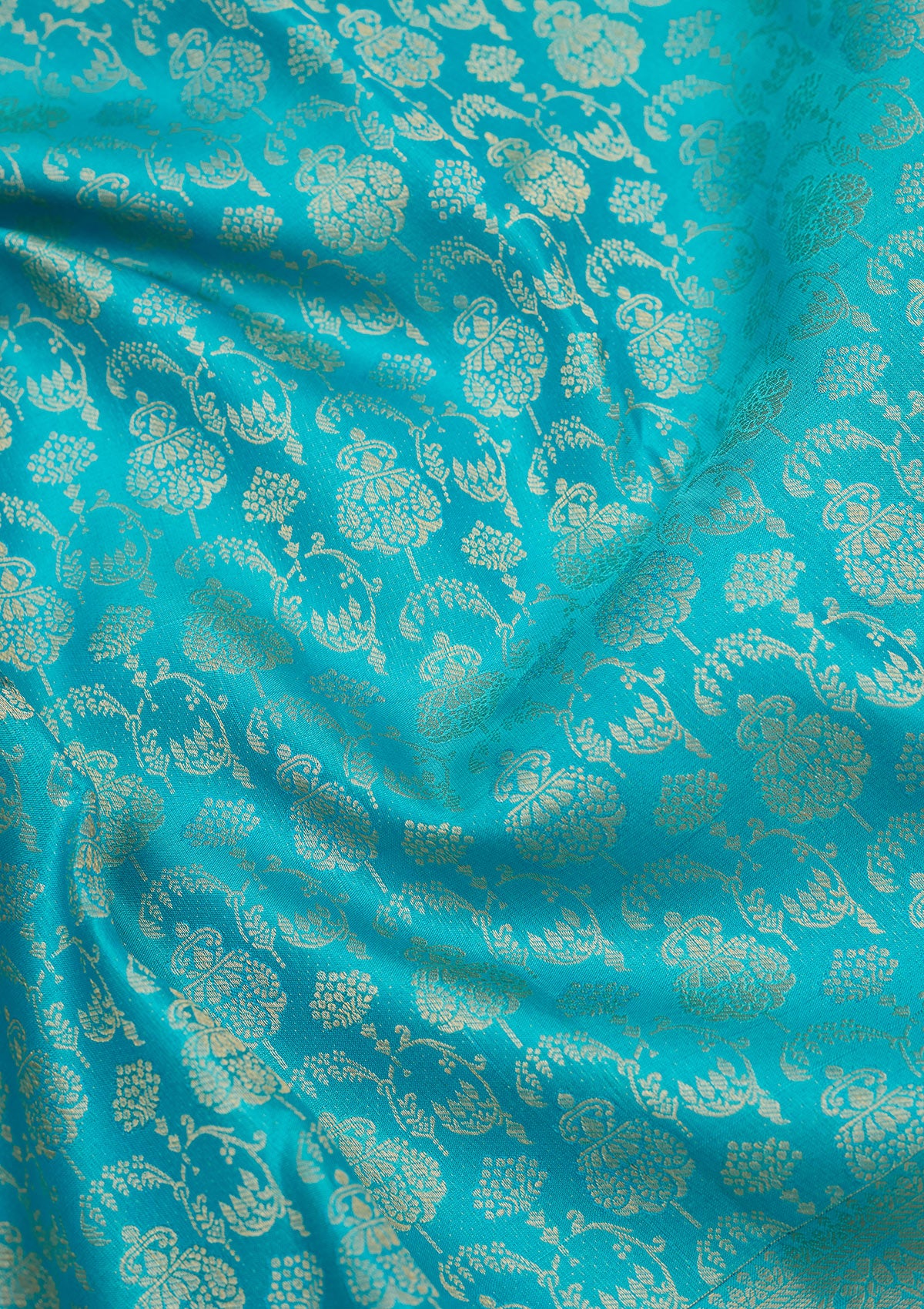 Blue Silk_Saree in Silk fabric. The Silk_Saree is elevated with Zariwork (Gold) embroidery. It comes with an Unstitched blouse. Comes with the Koskii promise of premium quality.