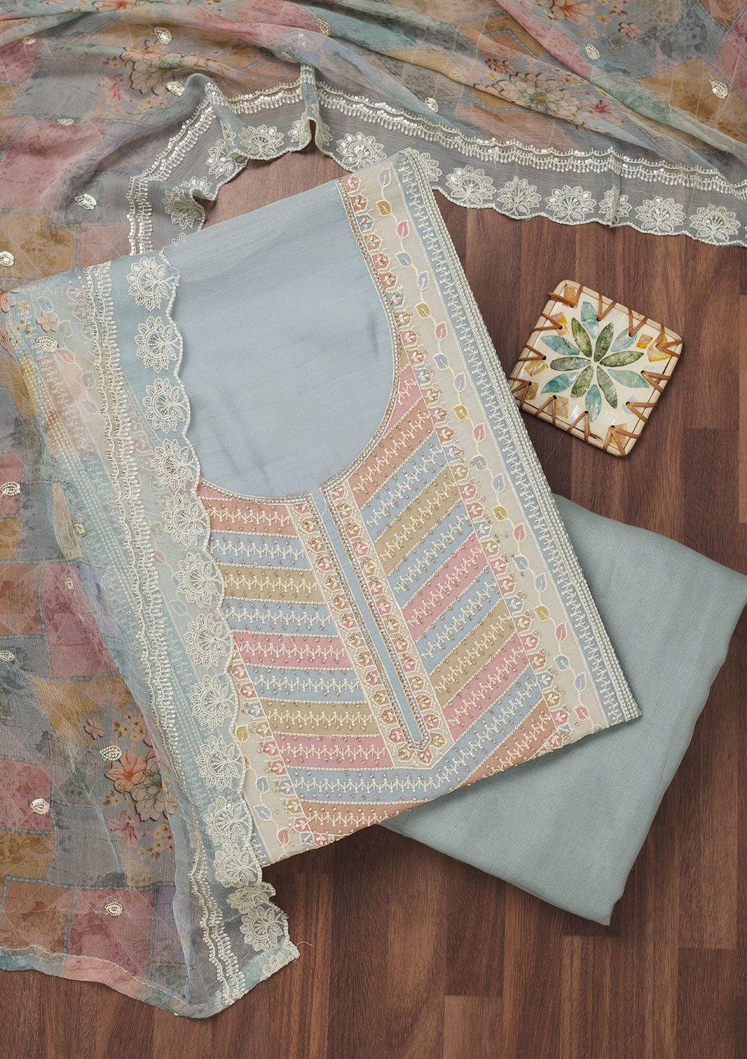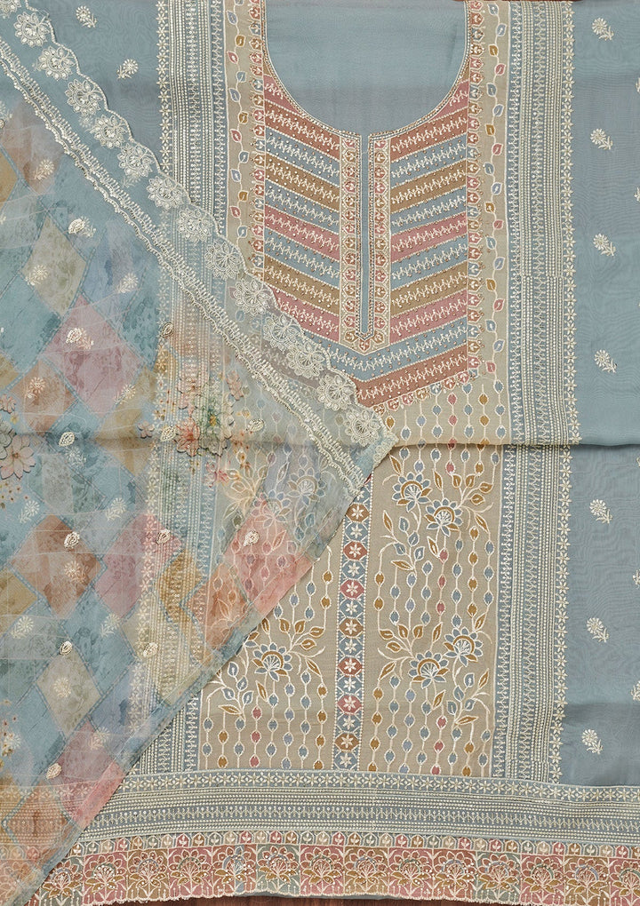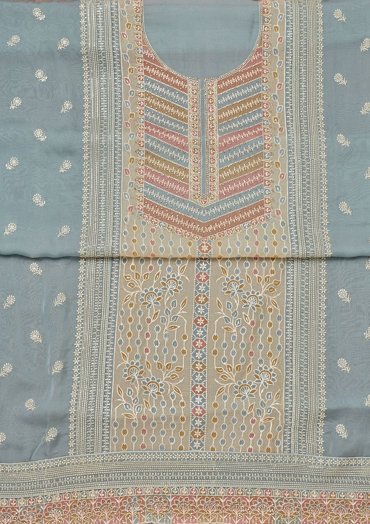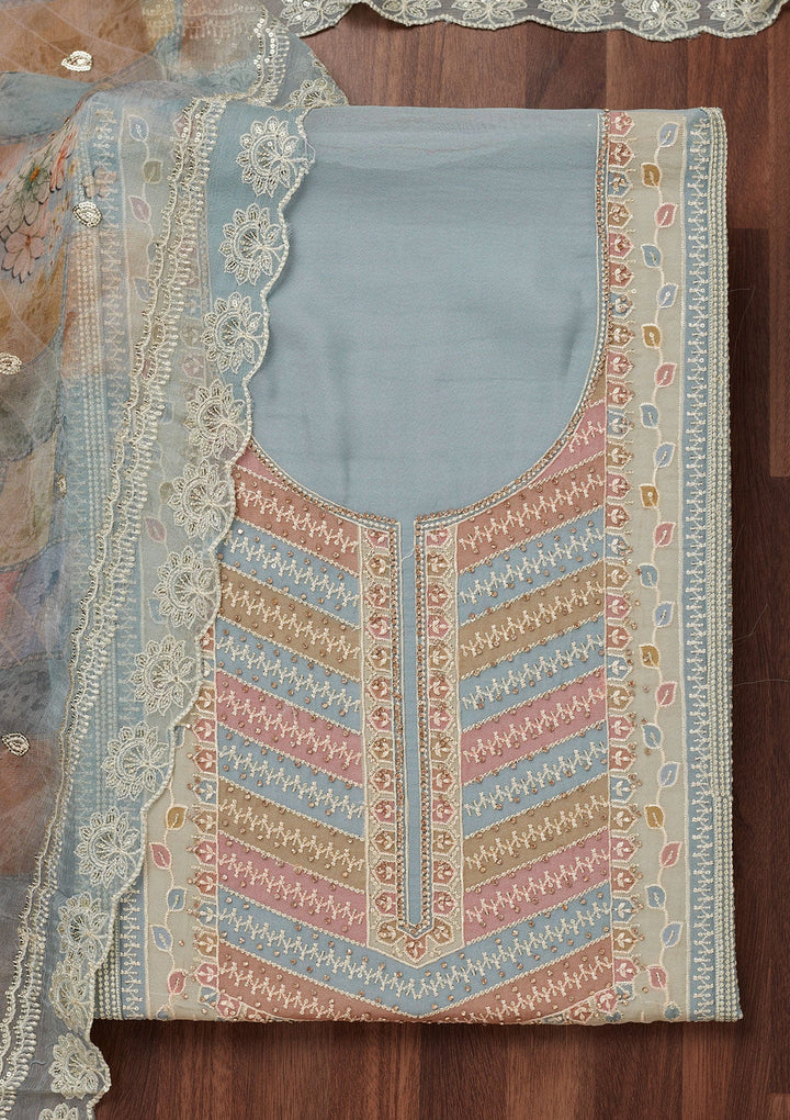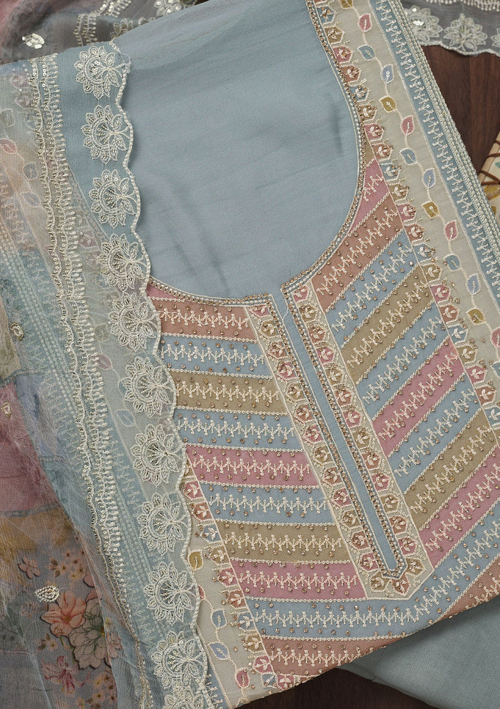 Blue Zariwork Semi Crepe Unstitched Salwar Suit