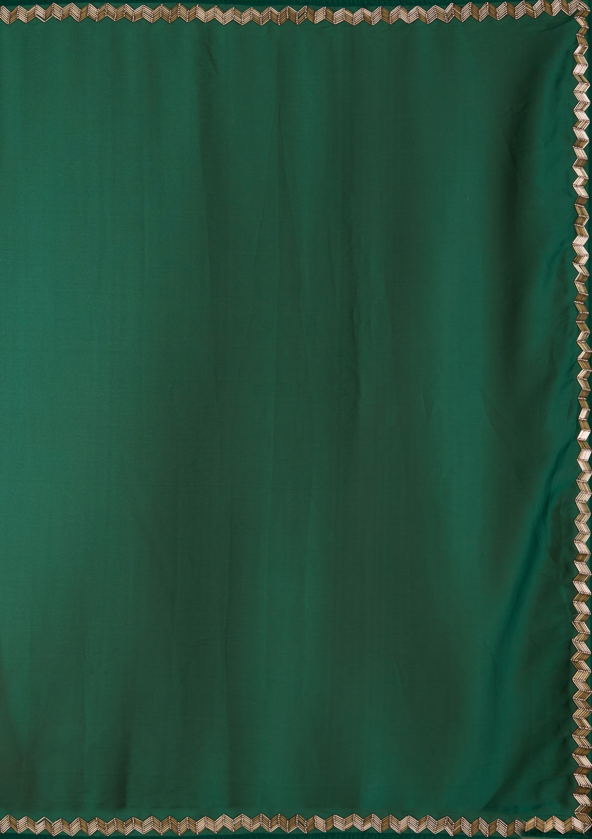 Bottle Green Saree in Satin fabric. The Saree is elevated with Aariwork embroidery. It comes with an Unstitched blouse. Comes with the Koskii promise of premium quality.