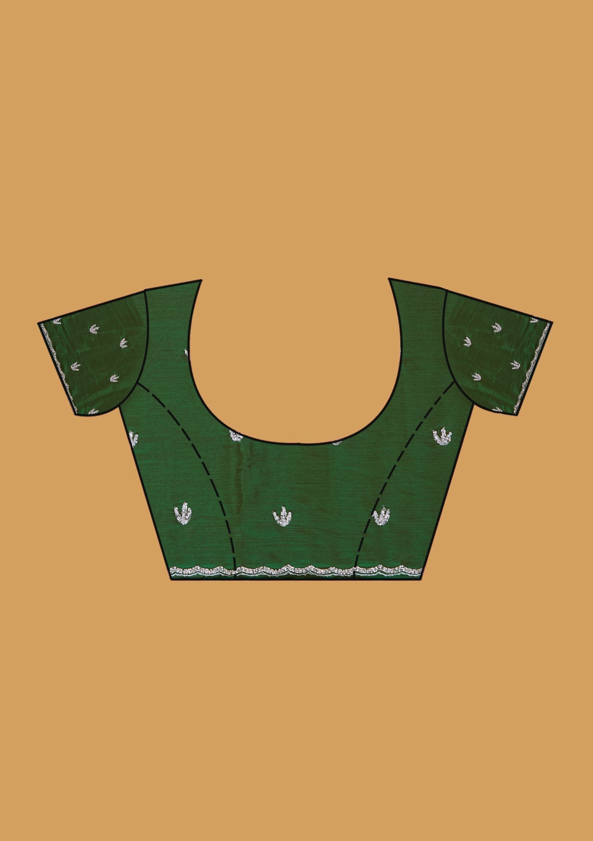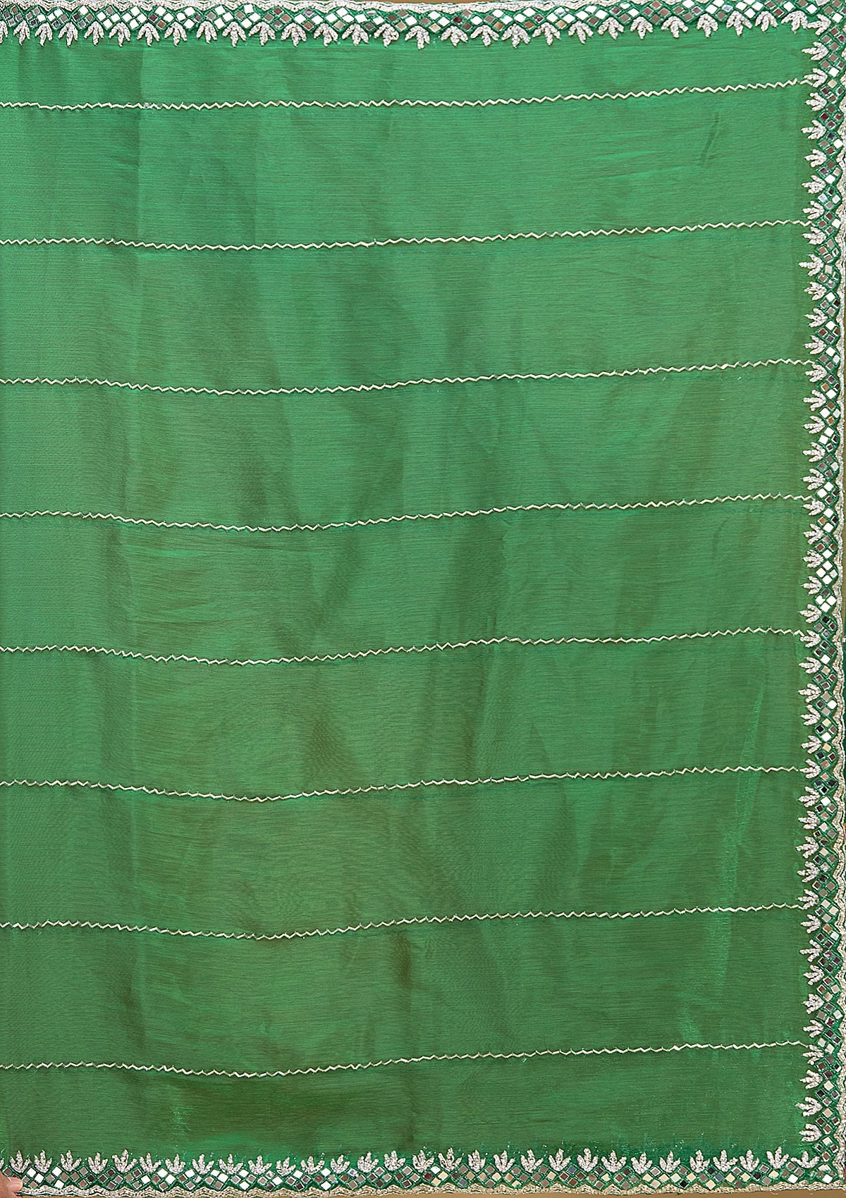 Bottle Green Saree in Tissue fabric. The Saree is elevated with Cutdana embroidery. It comes with an Unstitched blouse. Comes with the Koskii promise of premium quality.