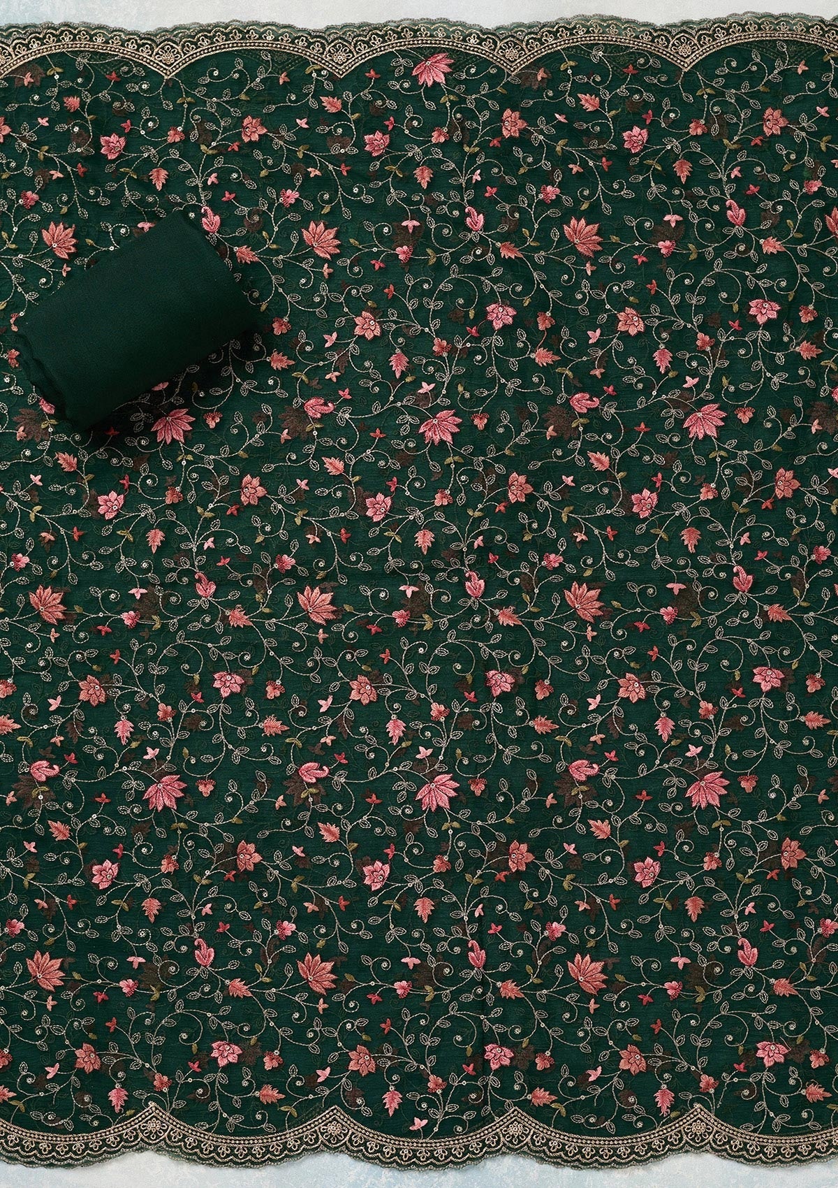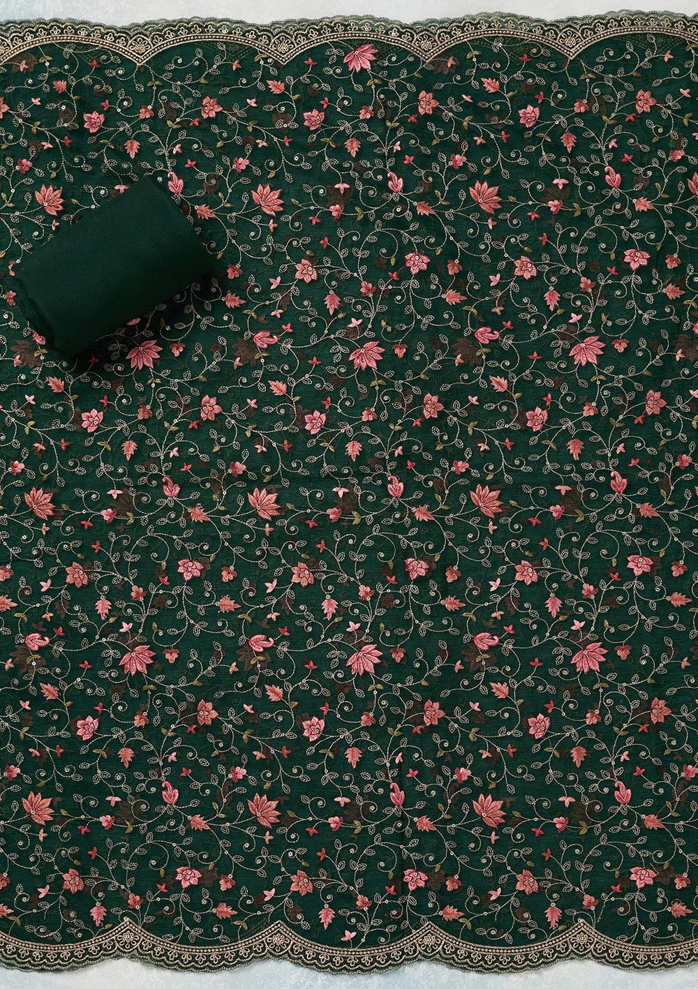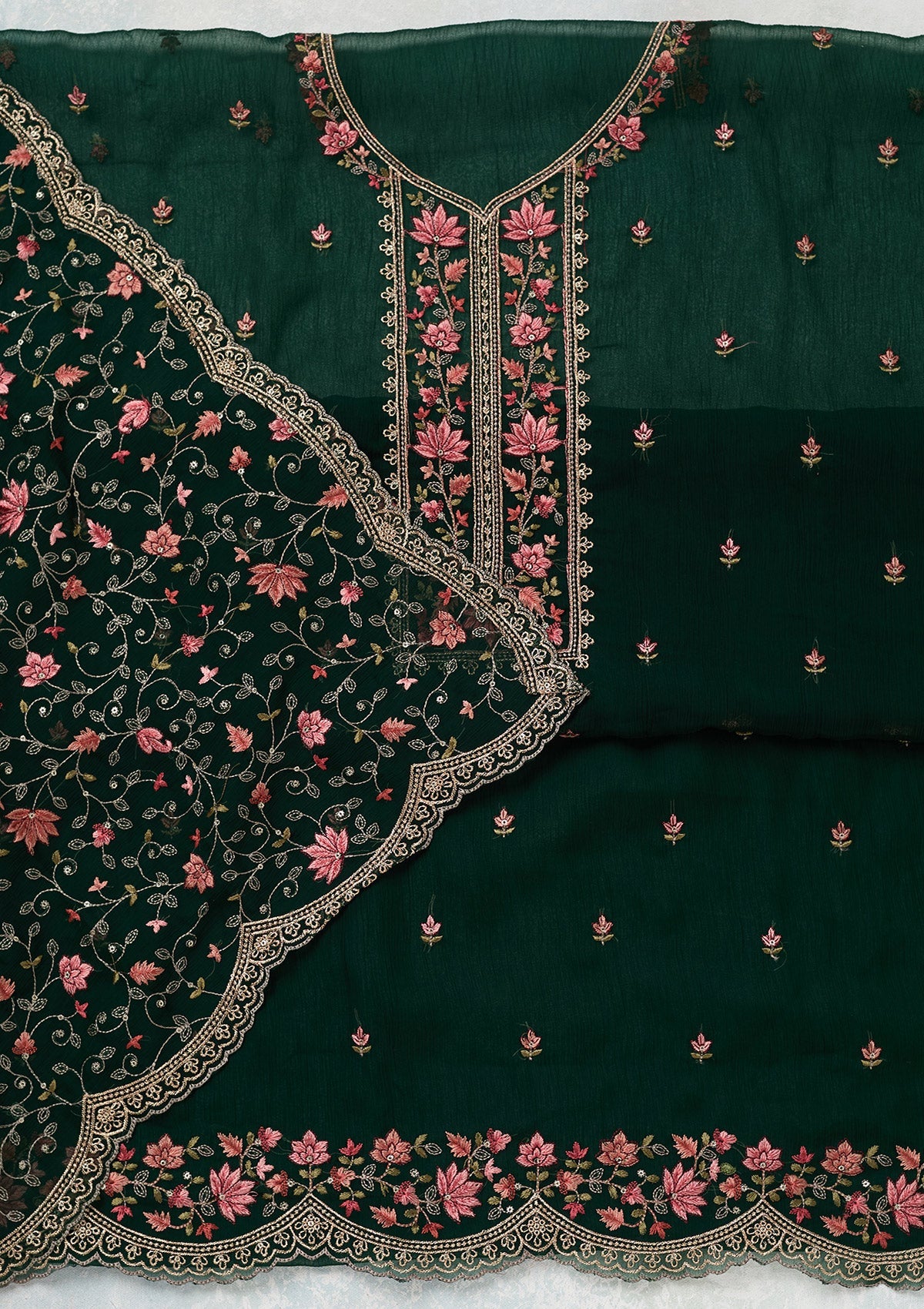 Bottle Green Threadwork Tissue Unstitched Salwar Suit