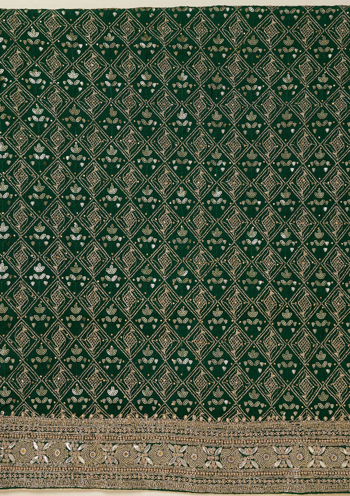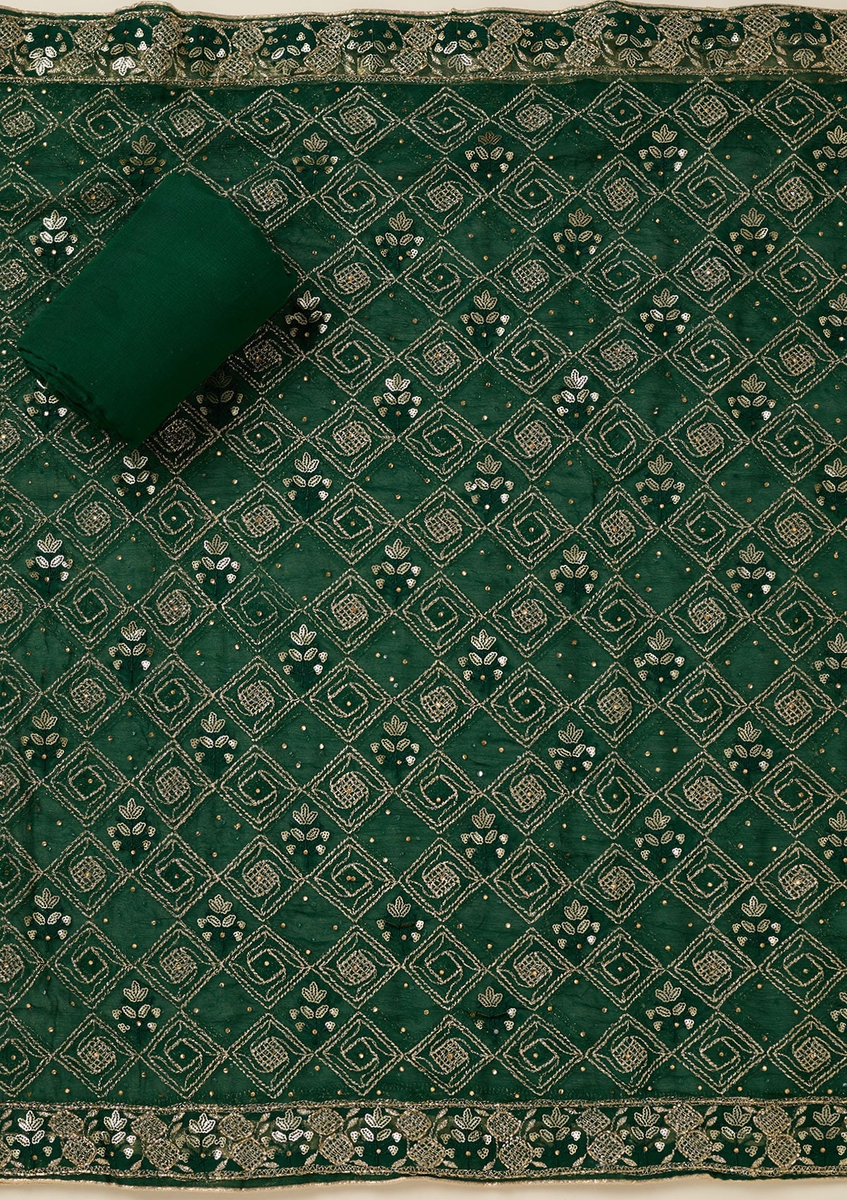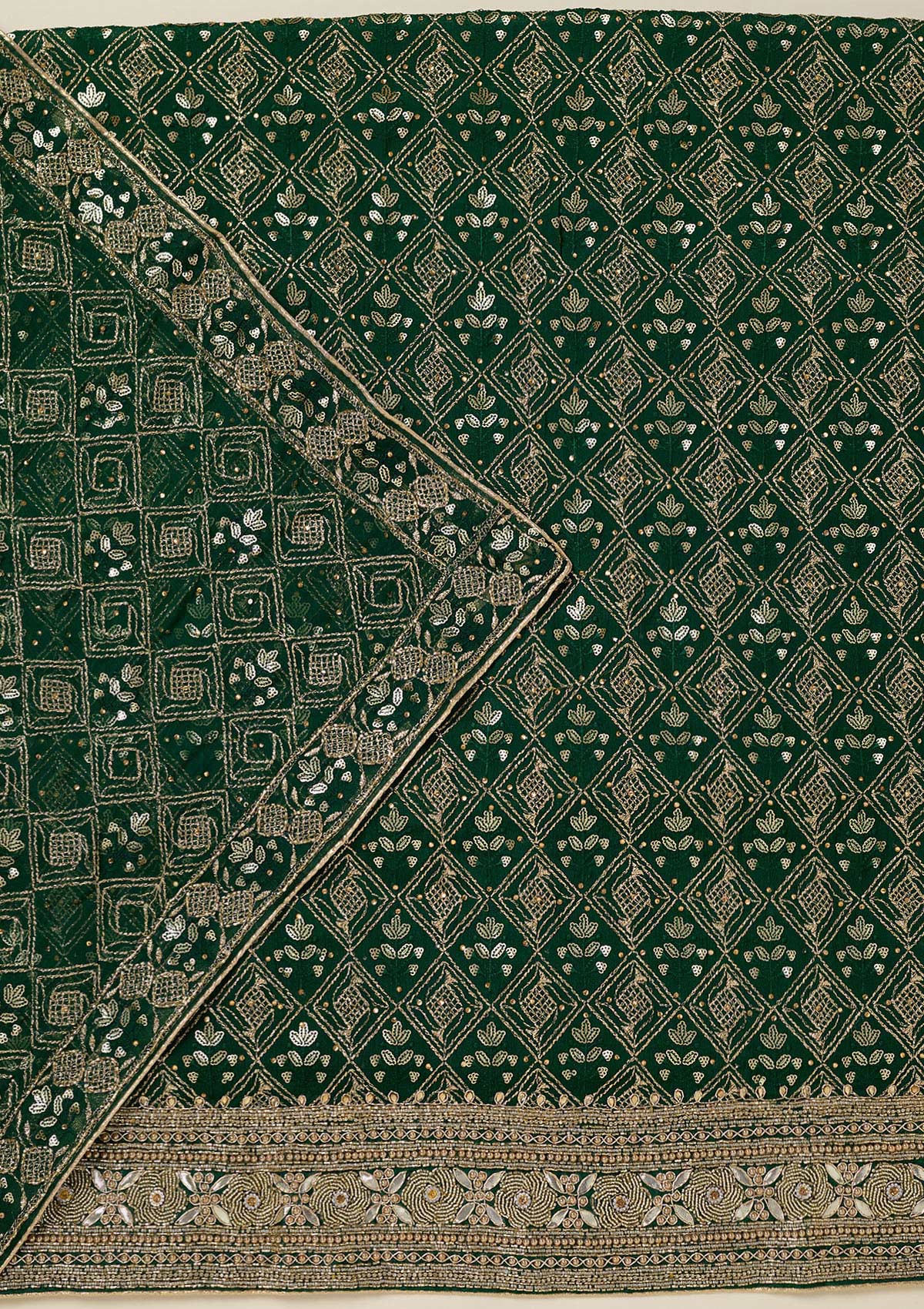 Bottle Green Zariwork Georgette Unstitched Salwar Suit