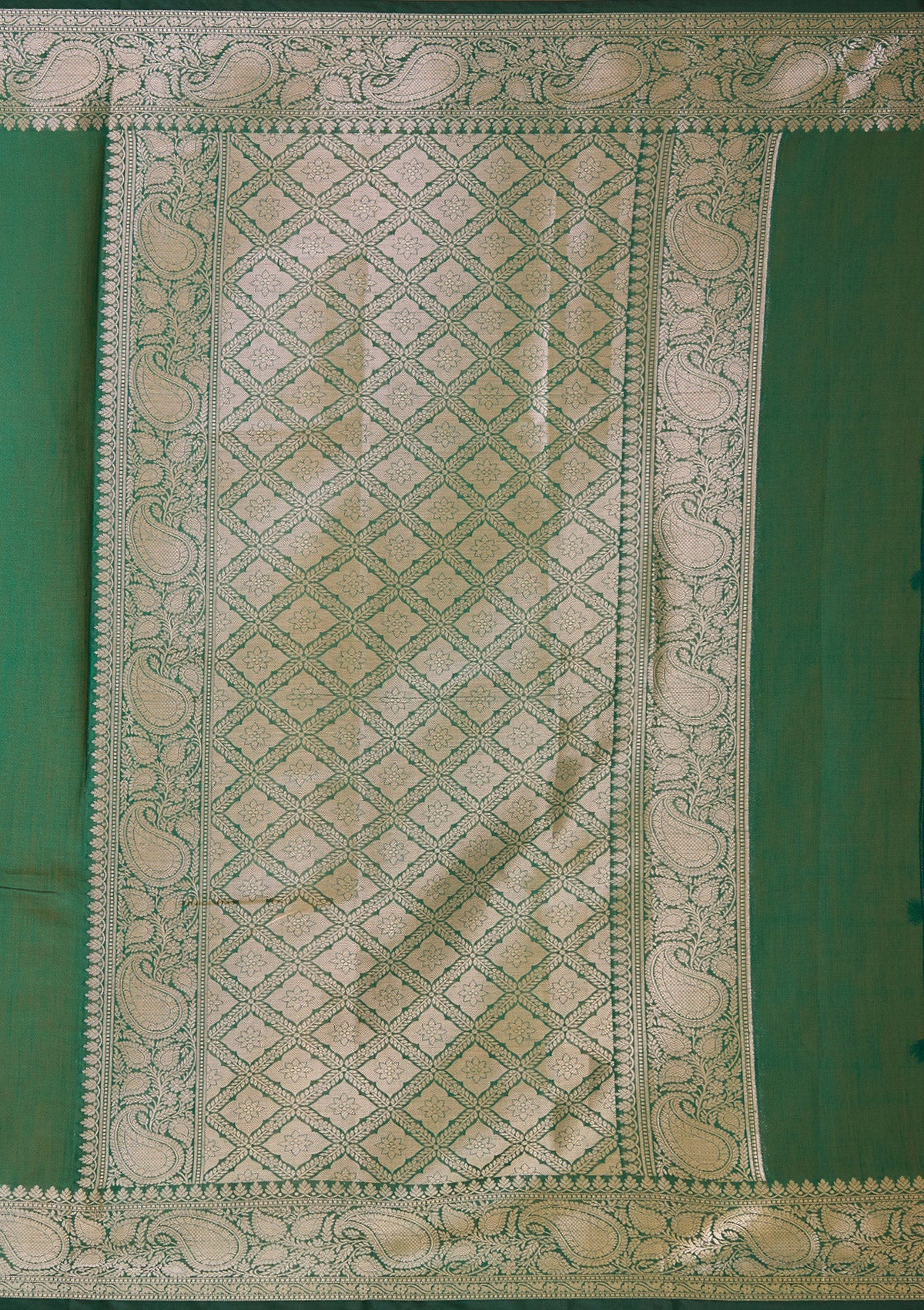 Bottle Green Silk_Saree in Art Silk fabric. The Silk_Saree is elevated with Zariwork (Gold) embroidery. It comes with an Unstitched blouse. Comes with the Koskii promise of premium quality.