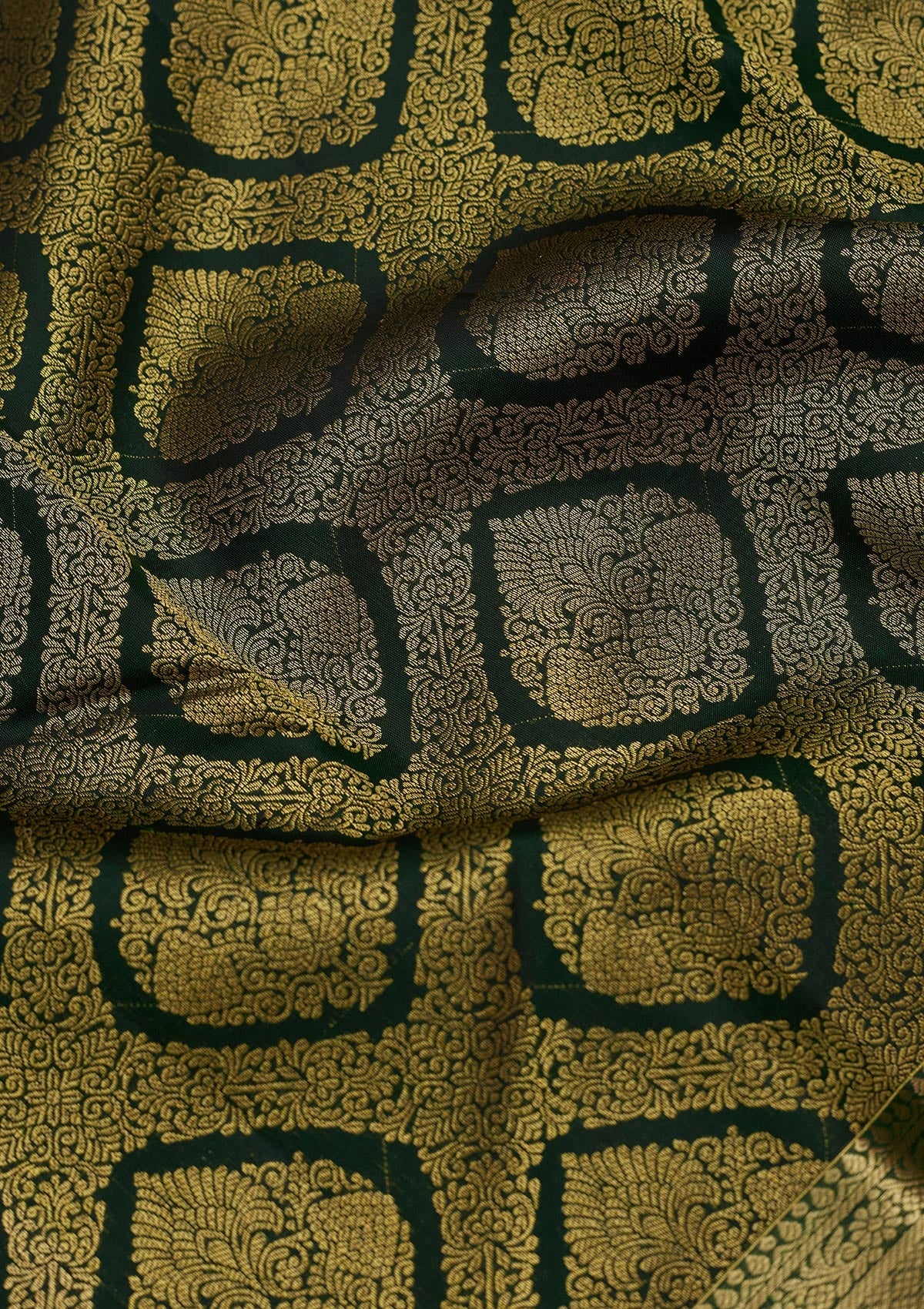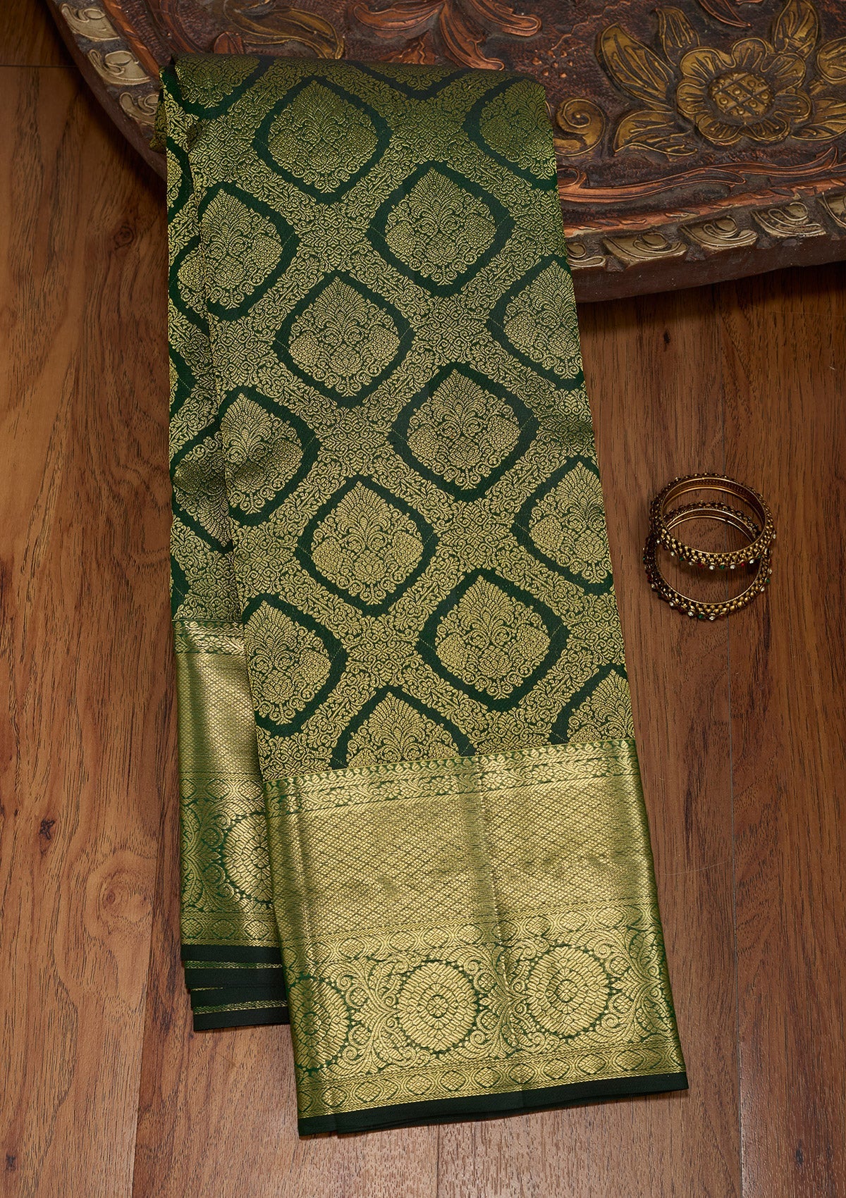 Bottle Green Zariwork (Gold) Pure Silk Saree