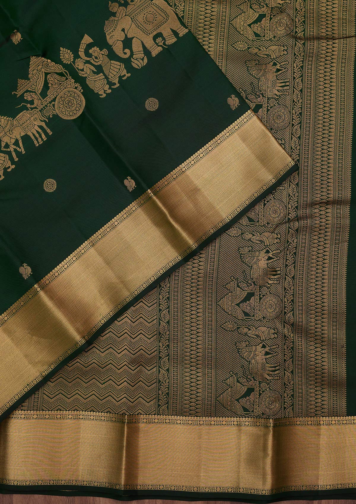 Bottle Green Zariwork (Gold) Silk Silk_Saree