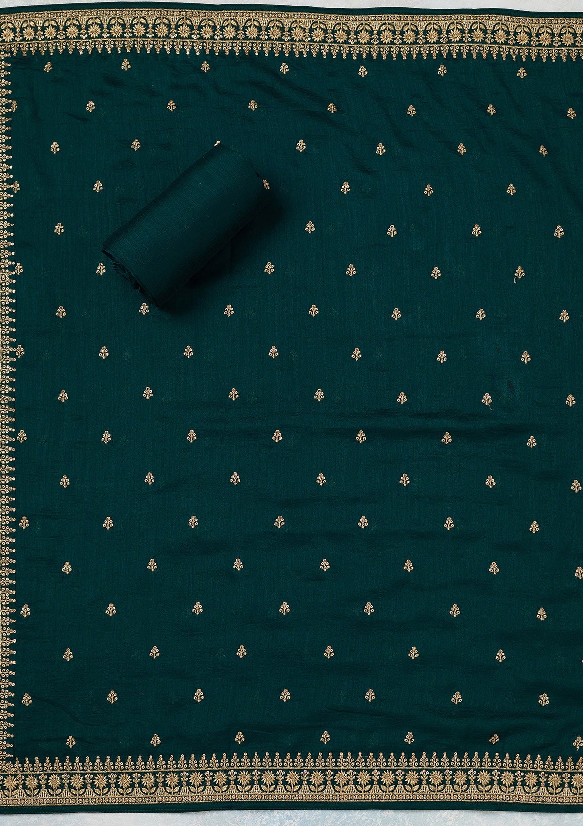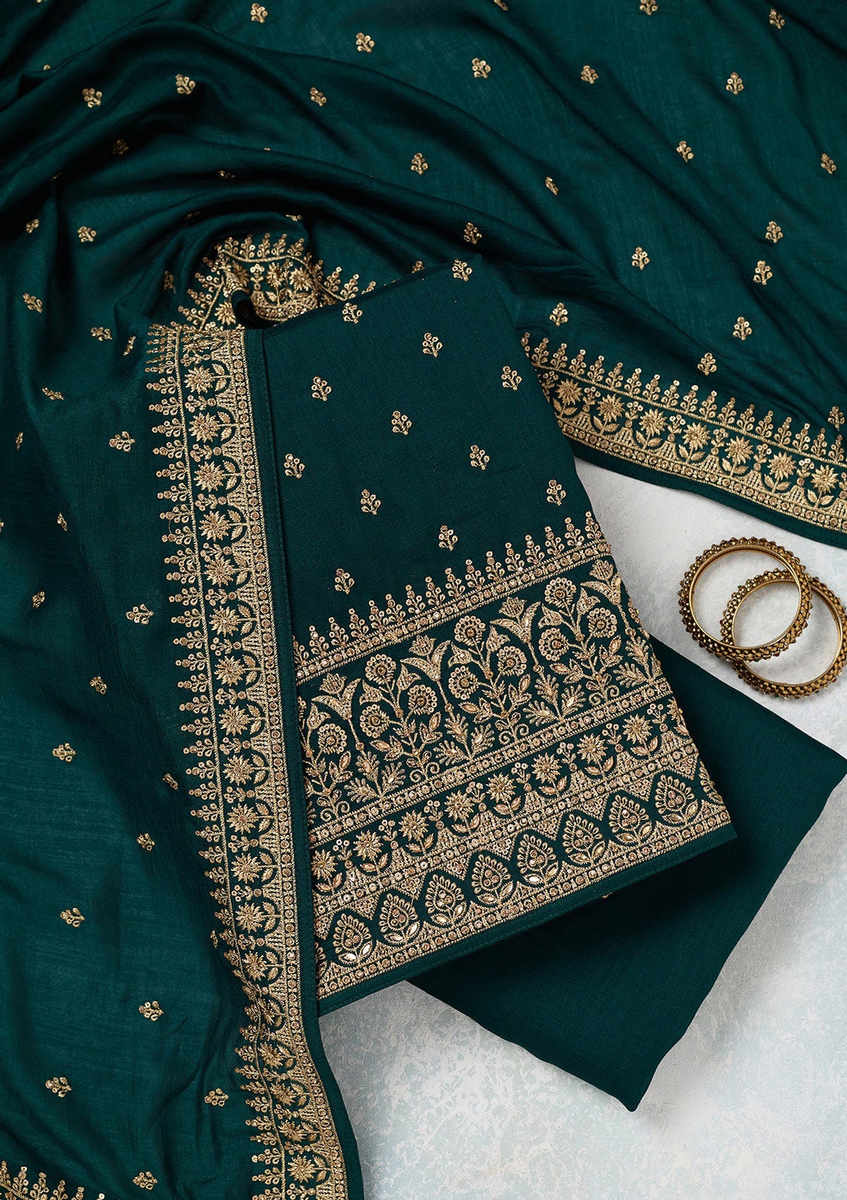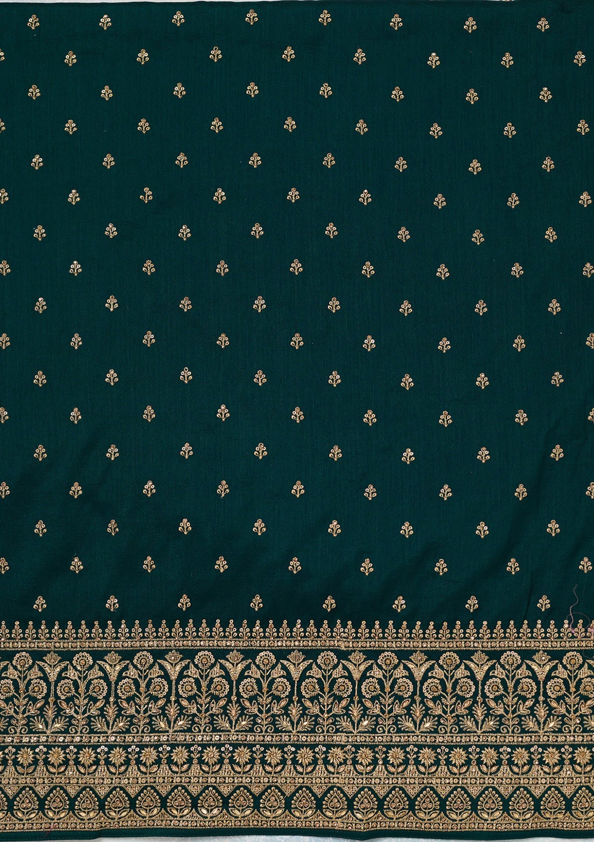 Bottle Green Zariwork (Gold) Soft Raw Silk Unstitched Salwar Suit
