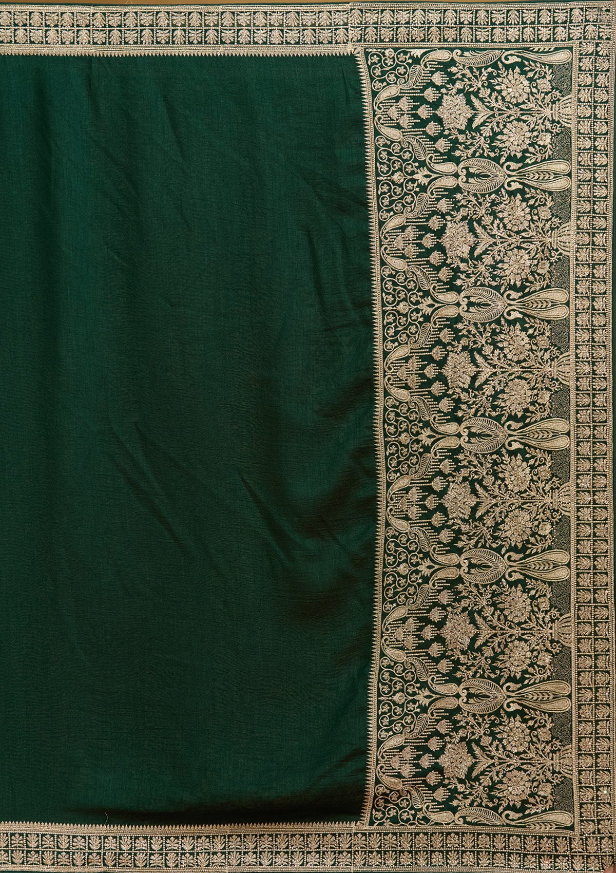 Bottle Green Zariwork (Gold) Soft Raw Silk Saree