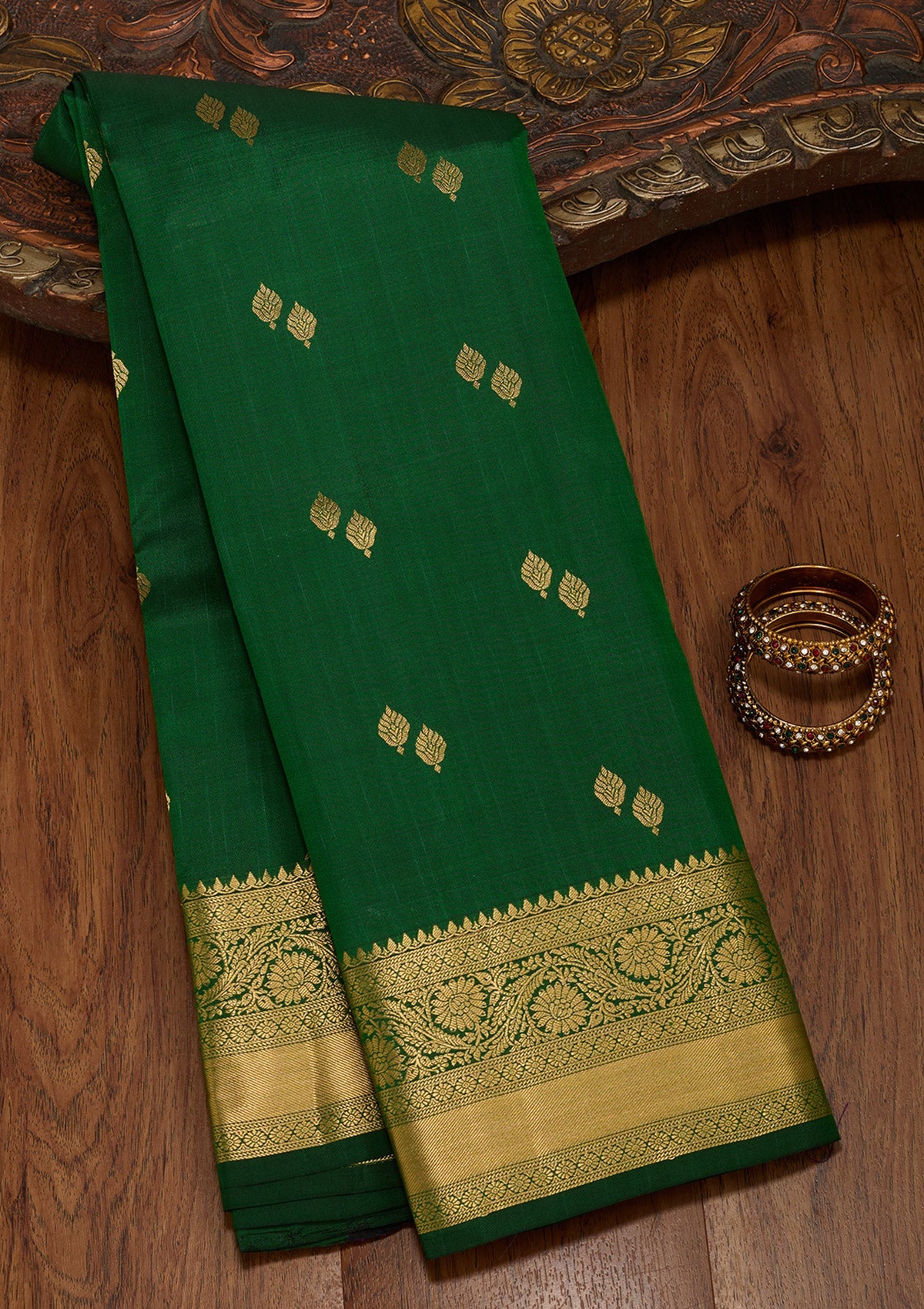 Bottle Green Zariwork Pure Silk Saree