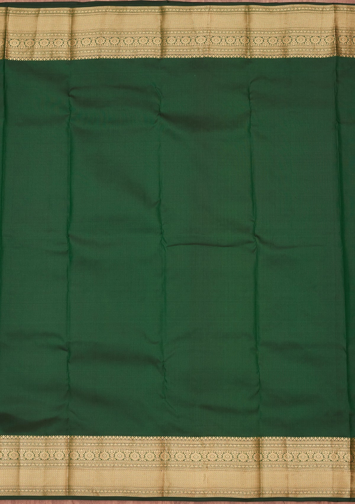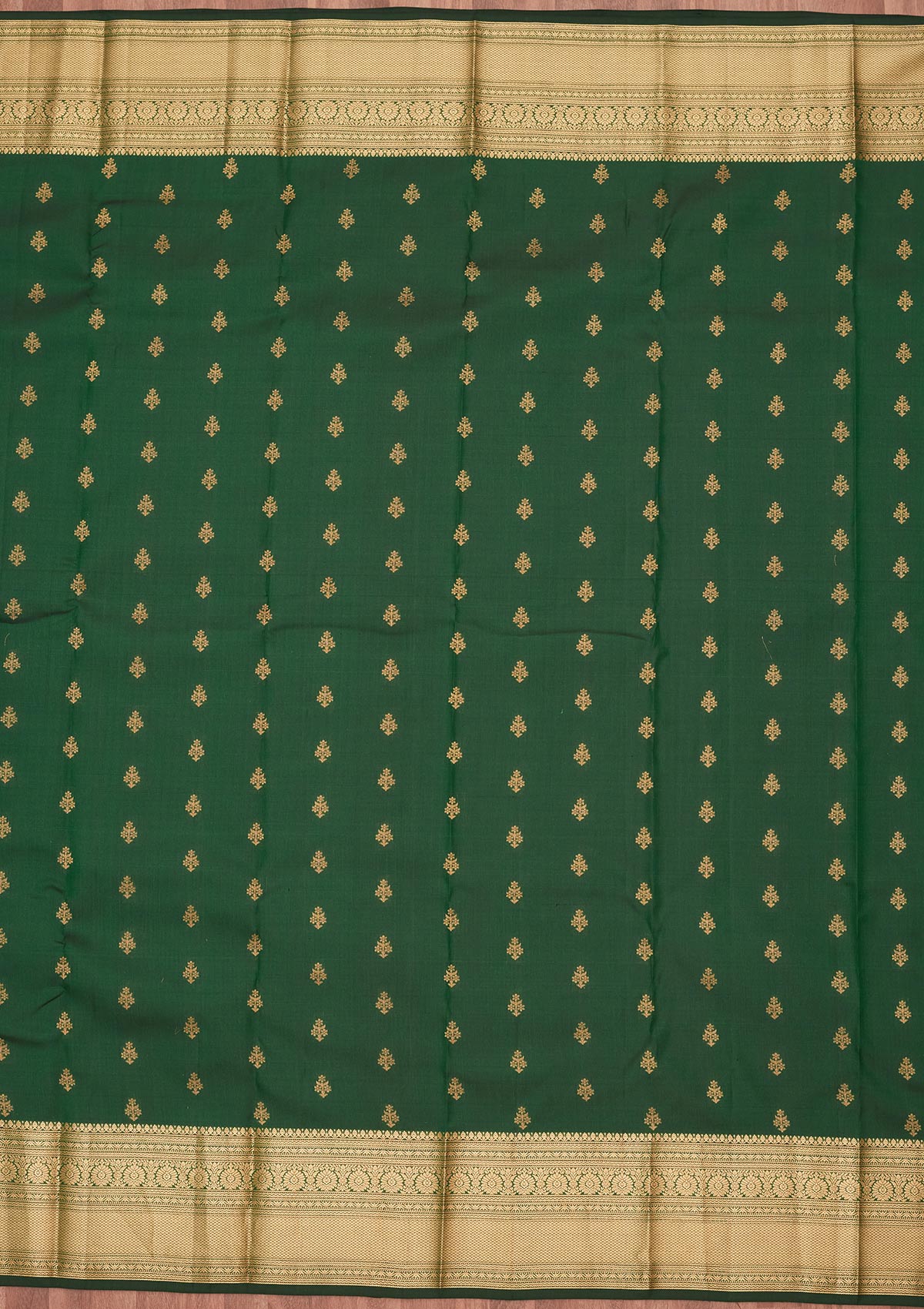 Bottle Green Silk Saree in Pure Silk fabric. The Silk Saree is elevated with Zariwork embroidery. It comes with an Unstitched blouse. Comes with the Koskii promise of premium quality.