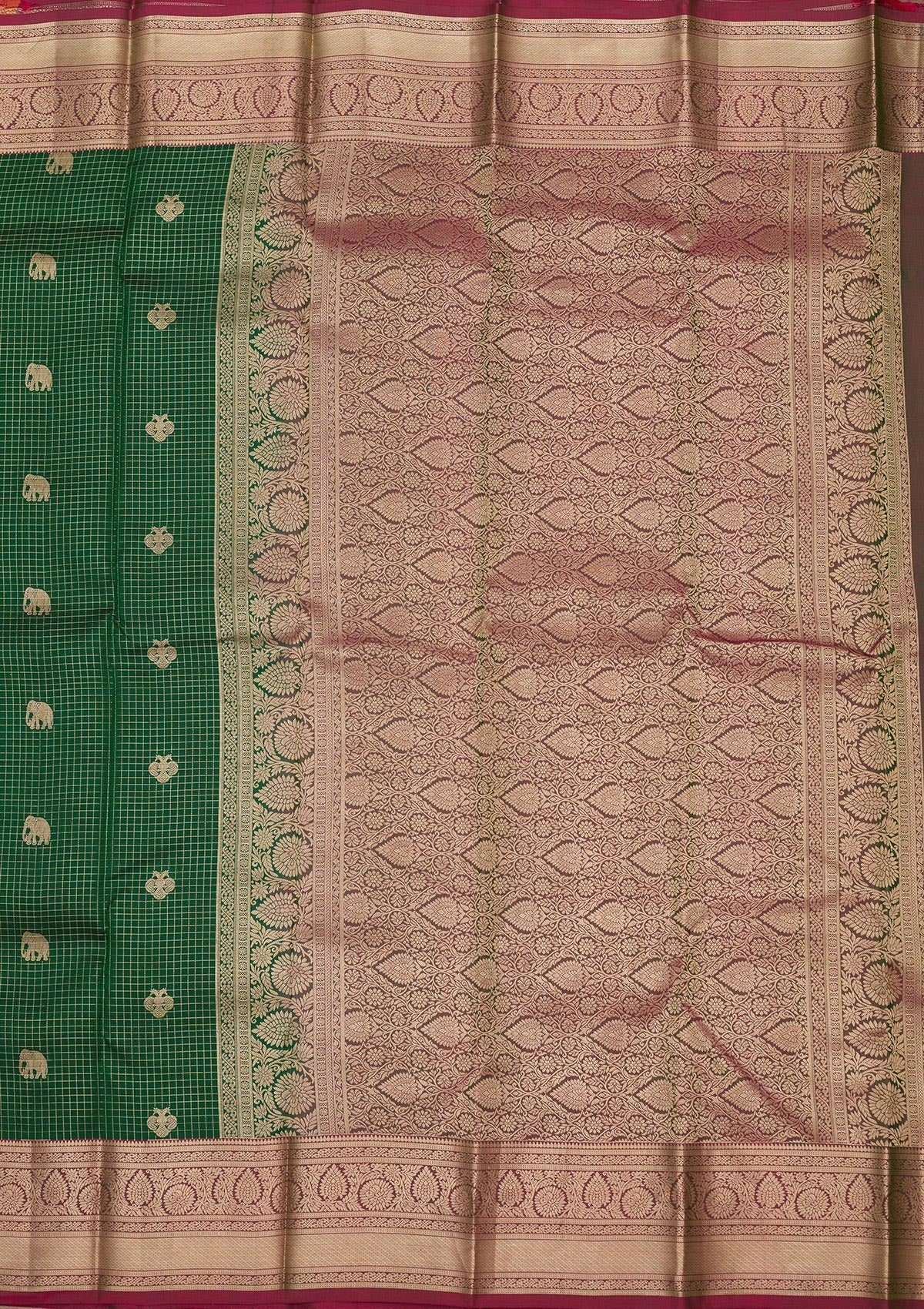 Bottle Green Silk_Saree in Pure Silk fabric. The Silk_Saree is elevated with Zariwork embroidery. It comes with an Unstitched blouse. Comes with the Koskii promise of premium quality.