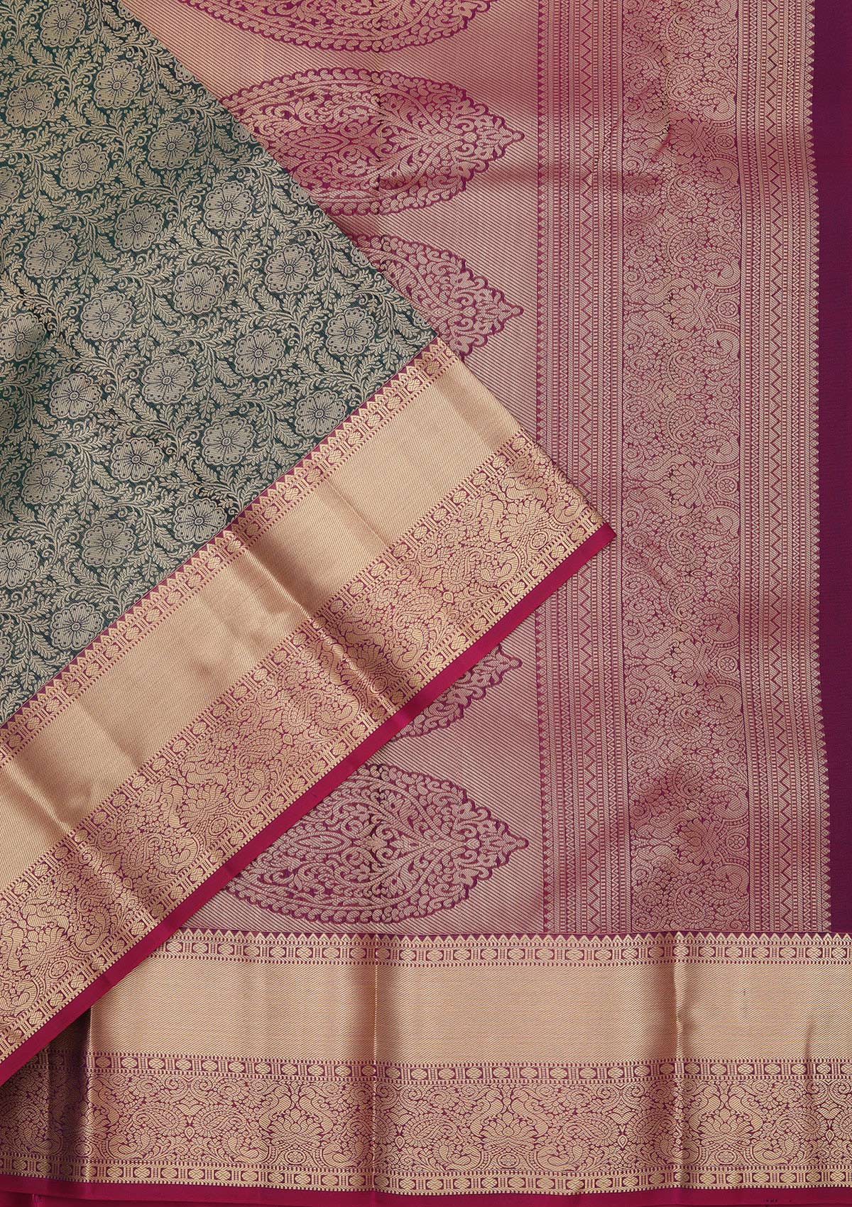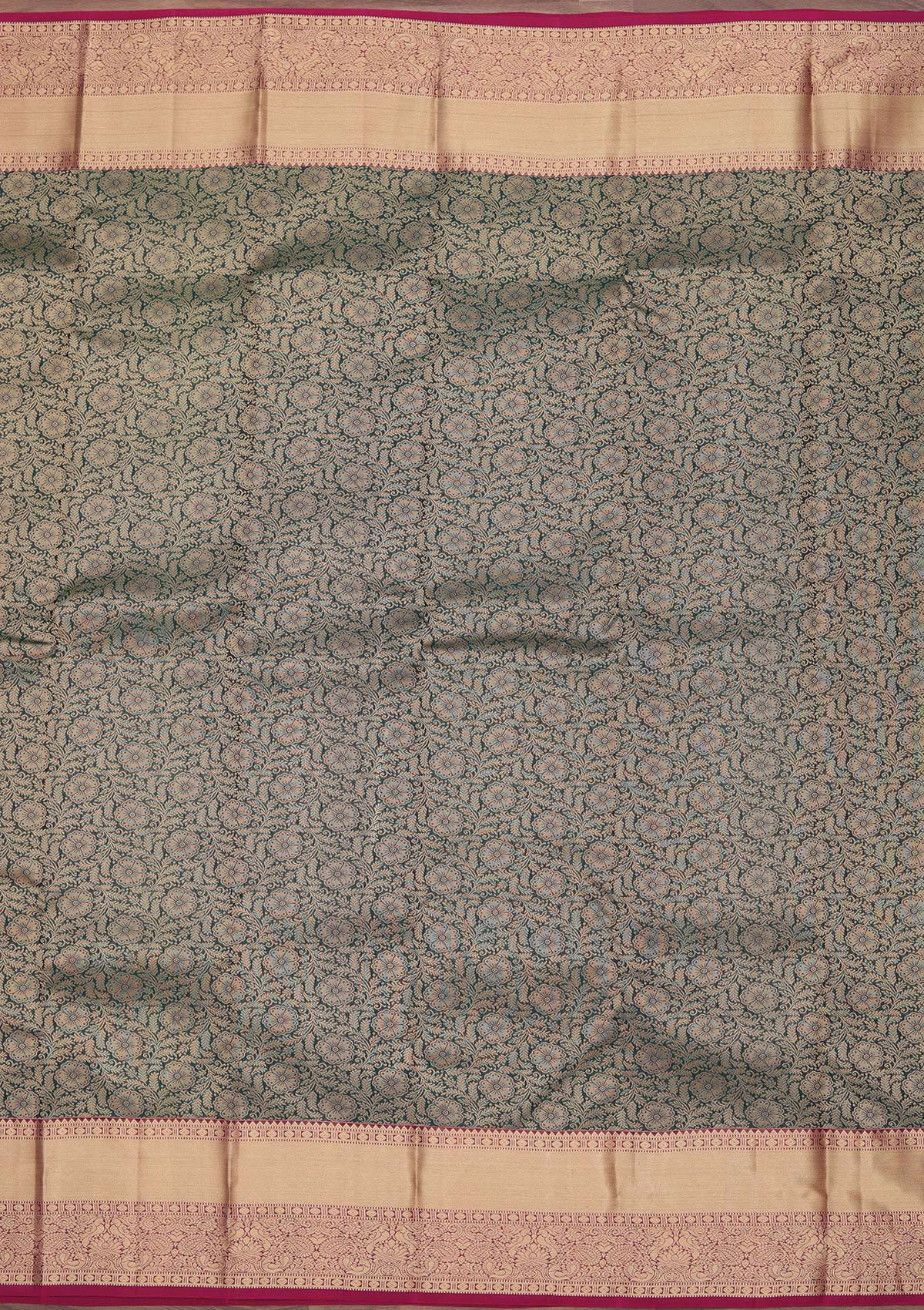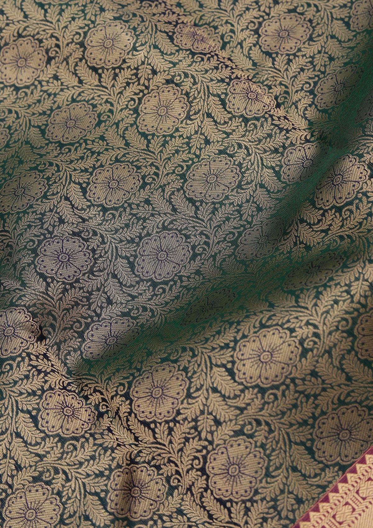 Bottle Green Zariwork Pure Silk Saree-koskii
