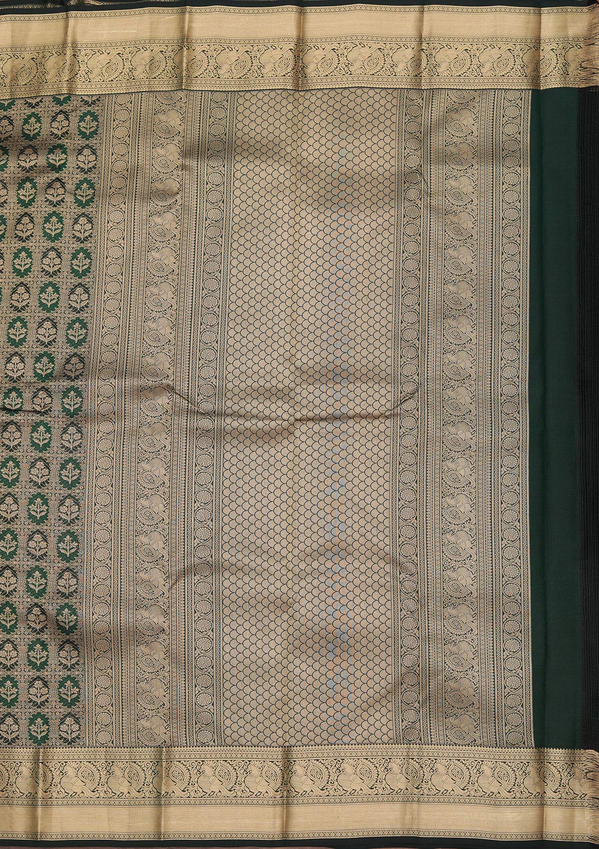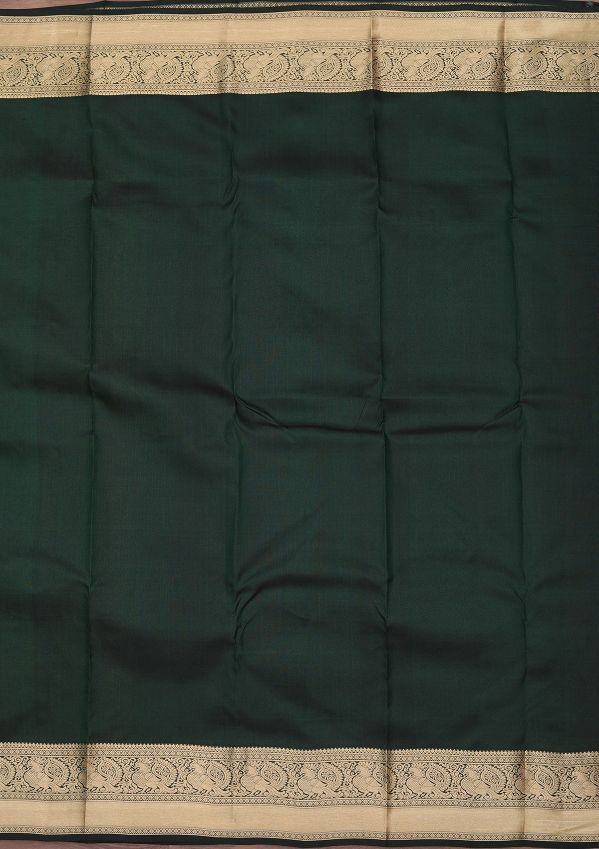 Bottle Green Zariwork Pure Silk Saree
