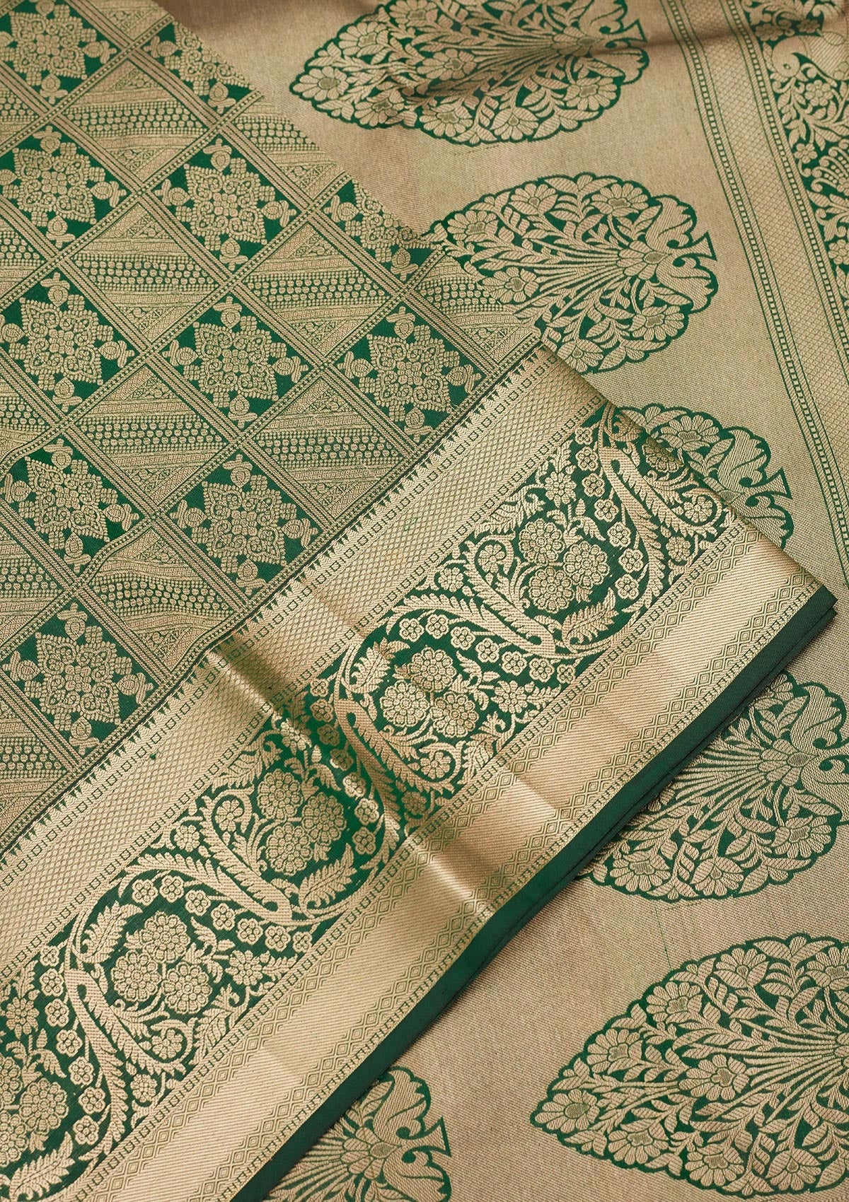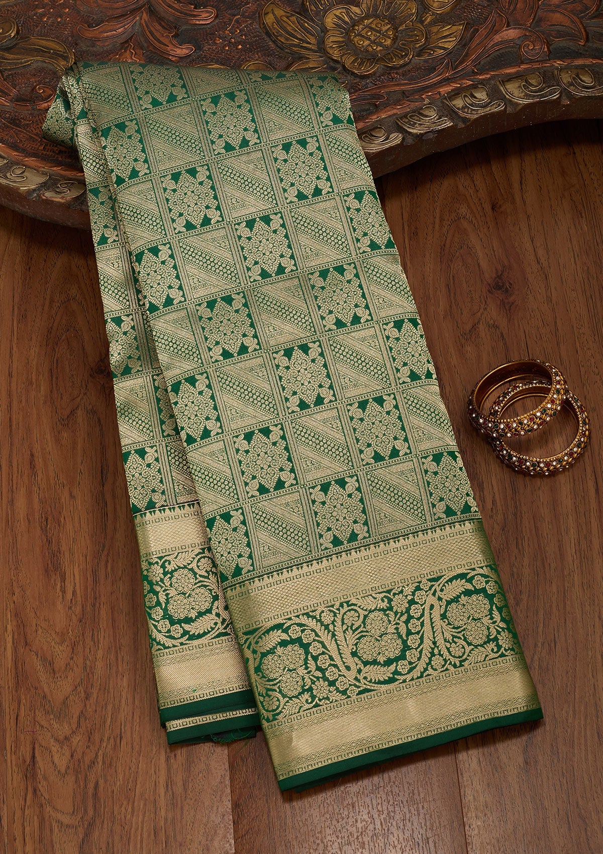 Bottle Green Zariwork Silk Saree