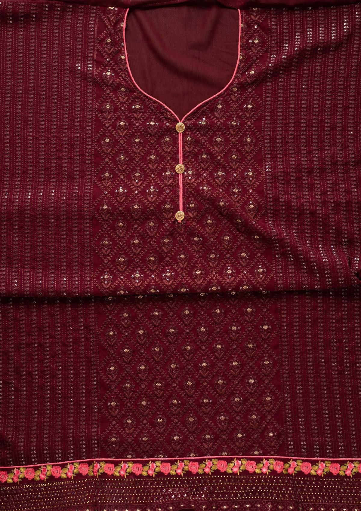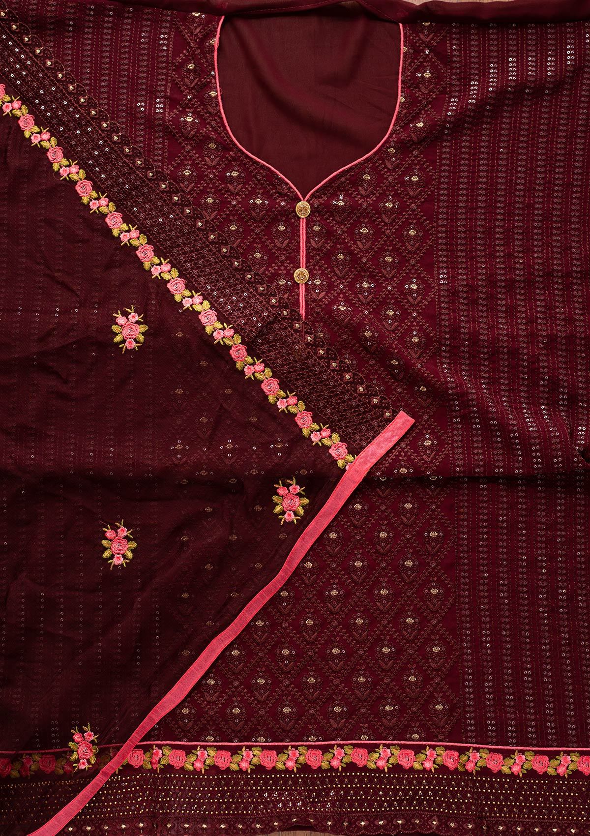 Brown Salwar Suit In Georgette Fabric. The Salwar Suit Is Embellished With Swarovski stone work. Accompanied with an unstitched bottom and dupatta. Comes With The Koskii Promise Of Premium Quality.