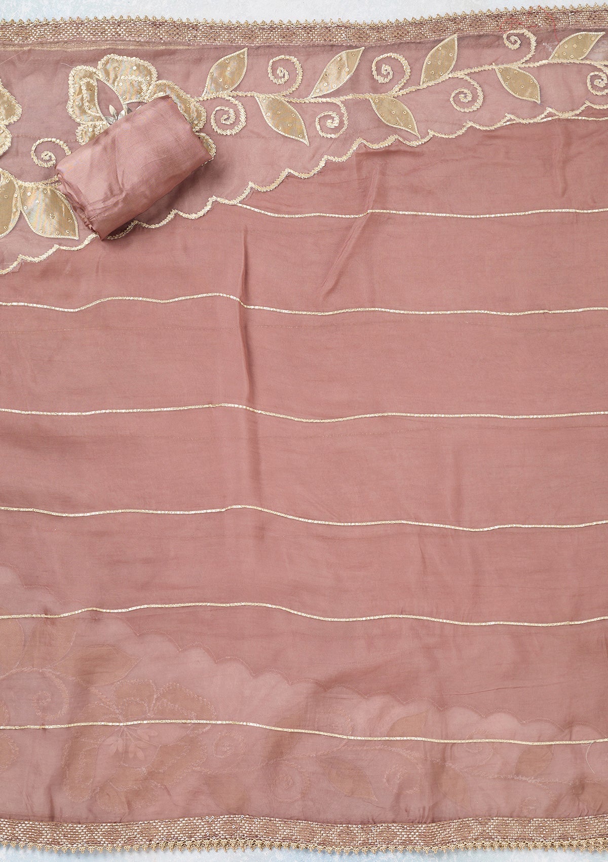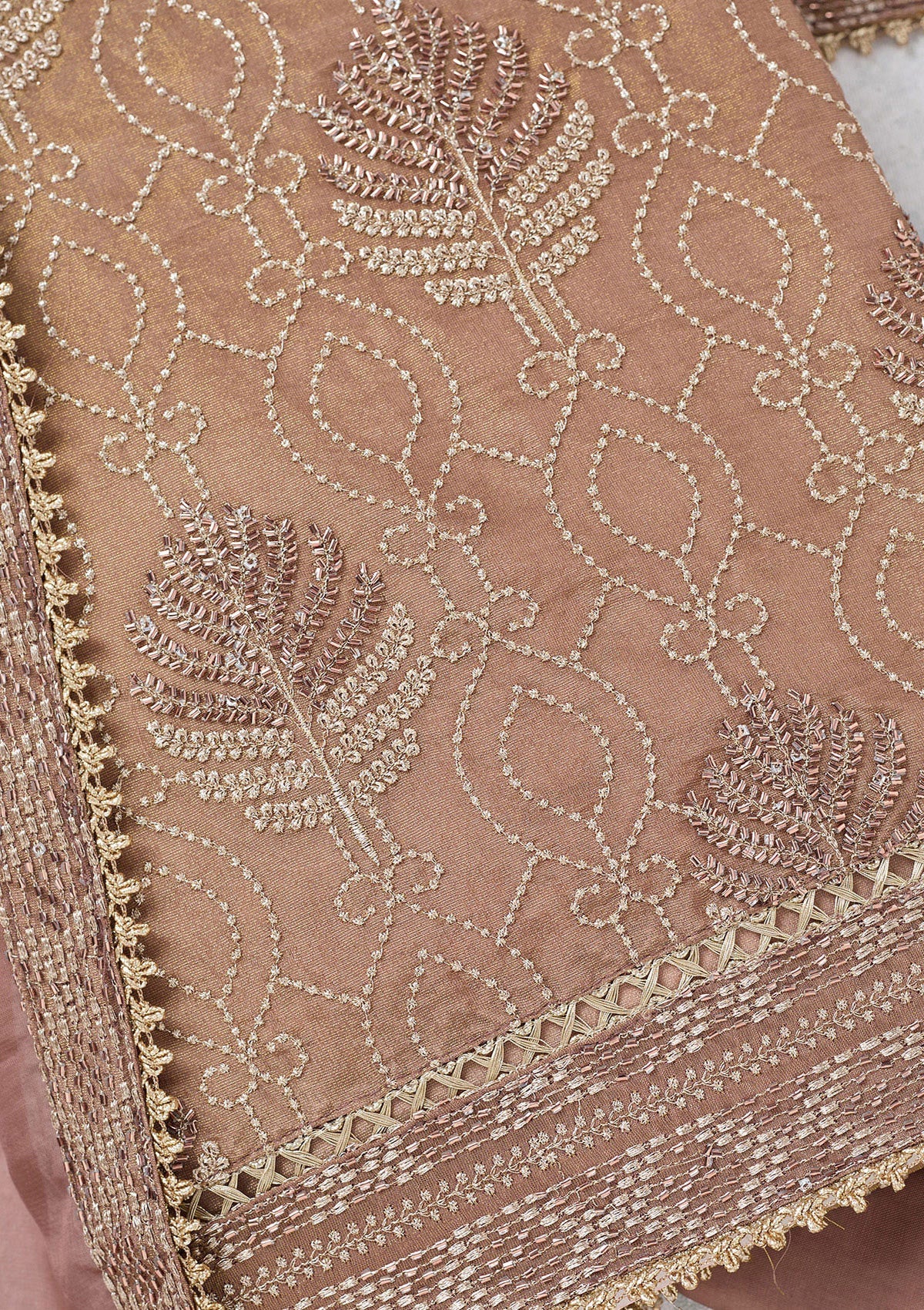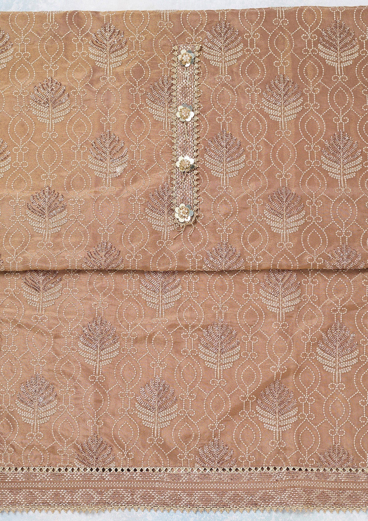 Brown Zariwork Tissue Unstitched Salwar Suit