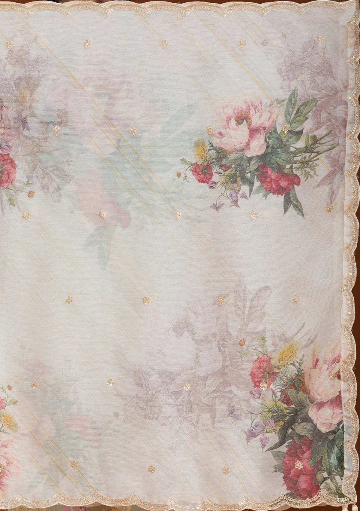 Cream Cording Soft Raw Silk Readymade Salwar Suit