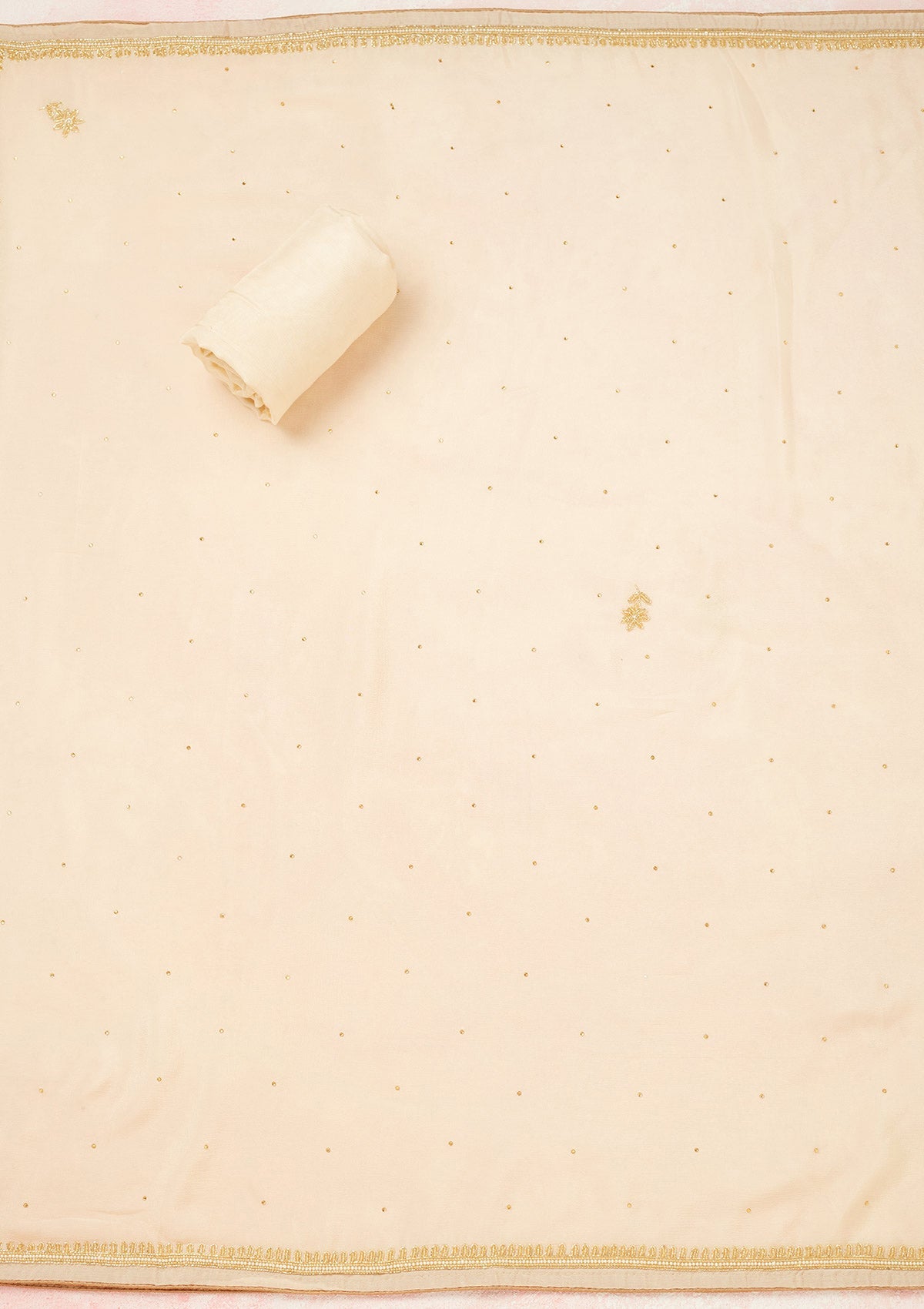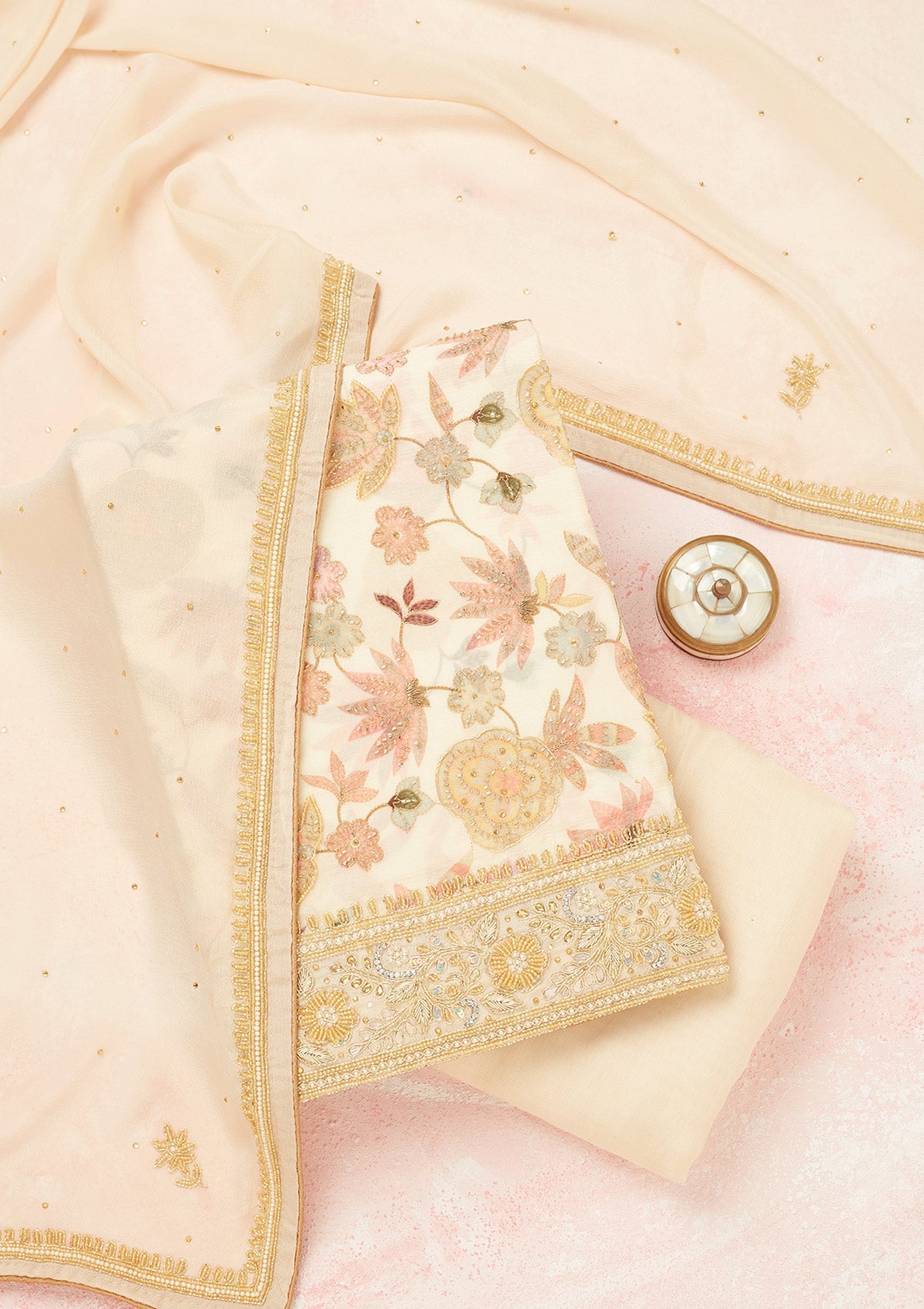Cream Cutdana Crepe Unstitched Salwar Suit