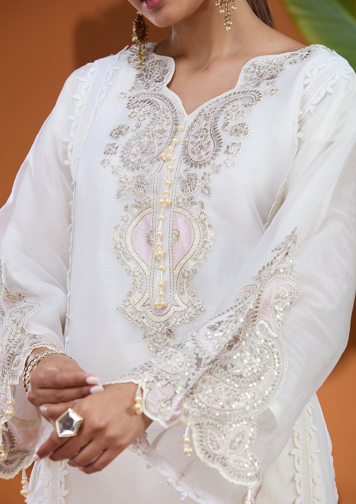 Cream Salwar_RM in Tissue fabric. The Salwar_RM is embellished with Cutdana embroidery. Accompanied with a bottom and dupatta. Comes with the Koskii promise of premium quality.