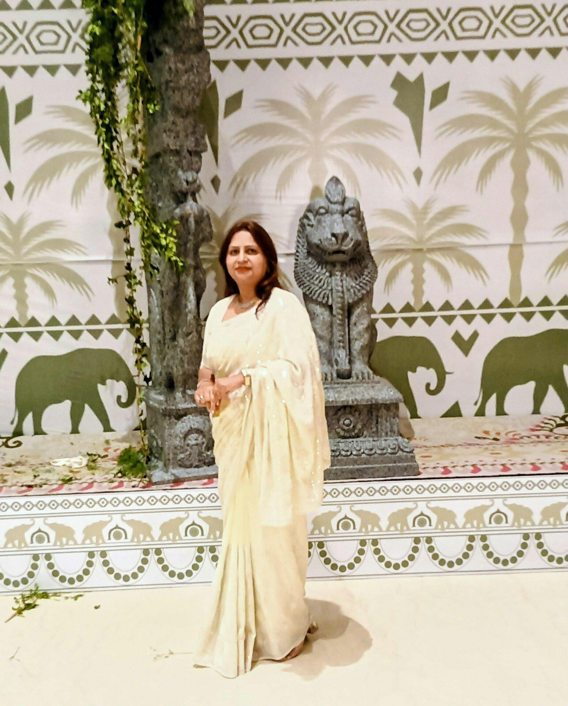 Cream Saree in Georgette fabric. The Saree is elevated with Sequins embroidery. It comes with an Unstitched blouse. Comes with the Koskii promise of premium quality.