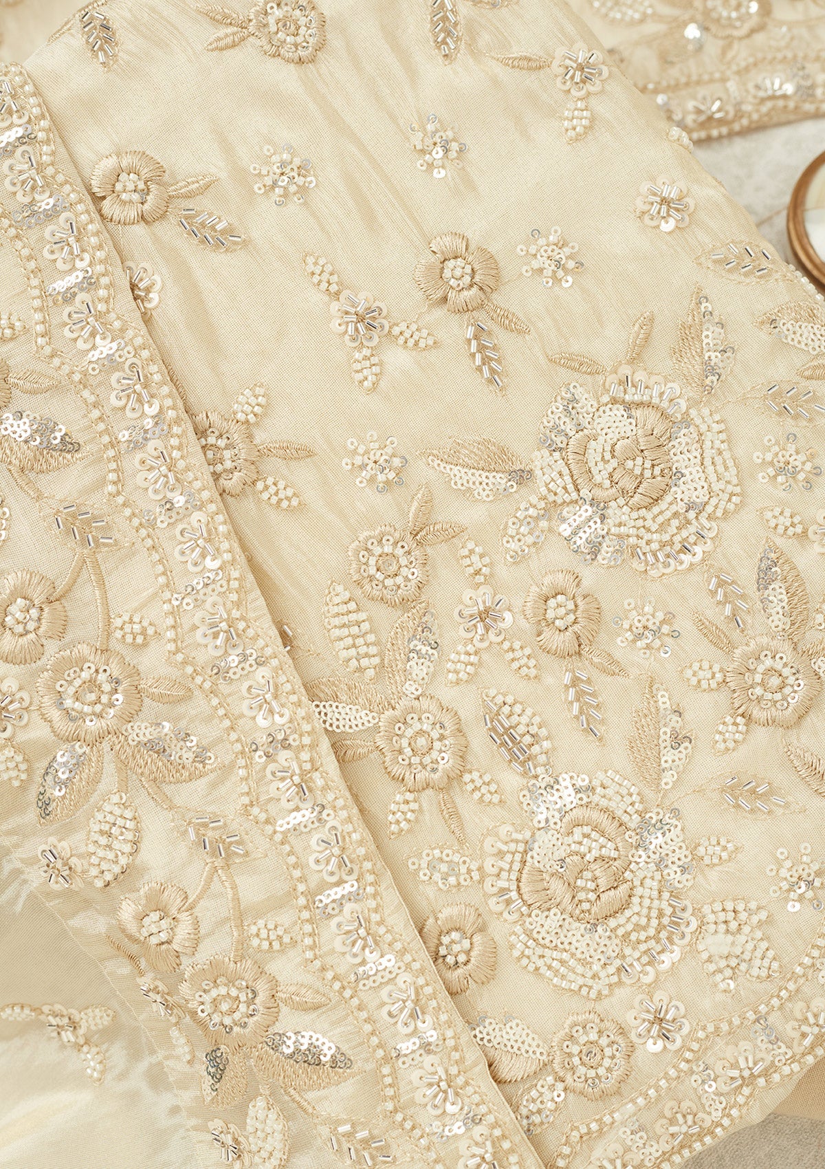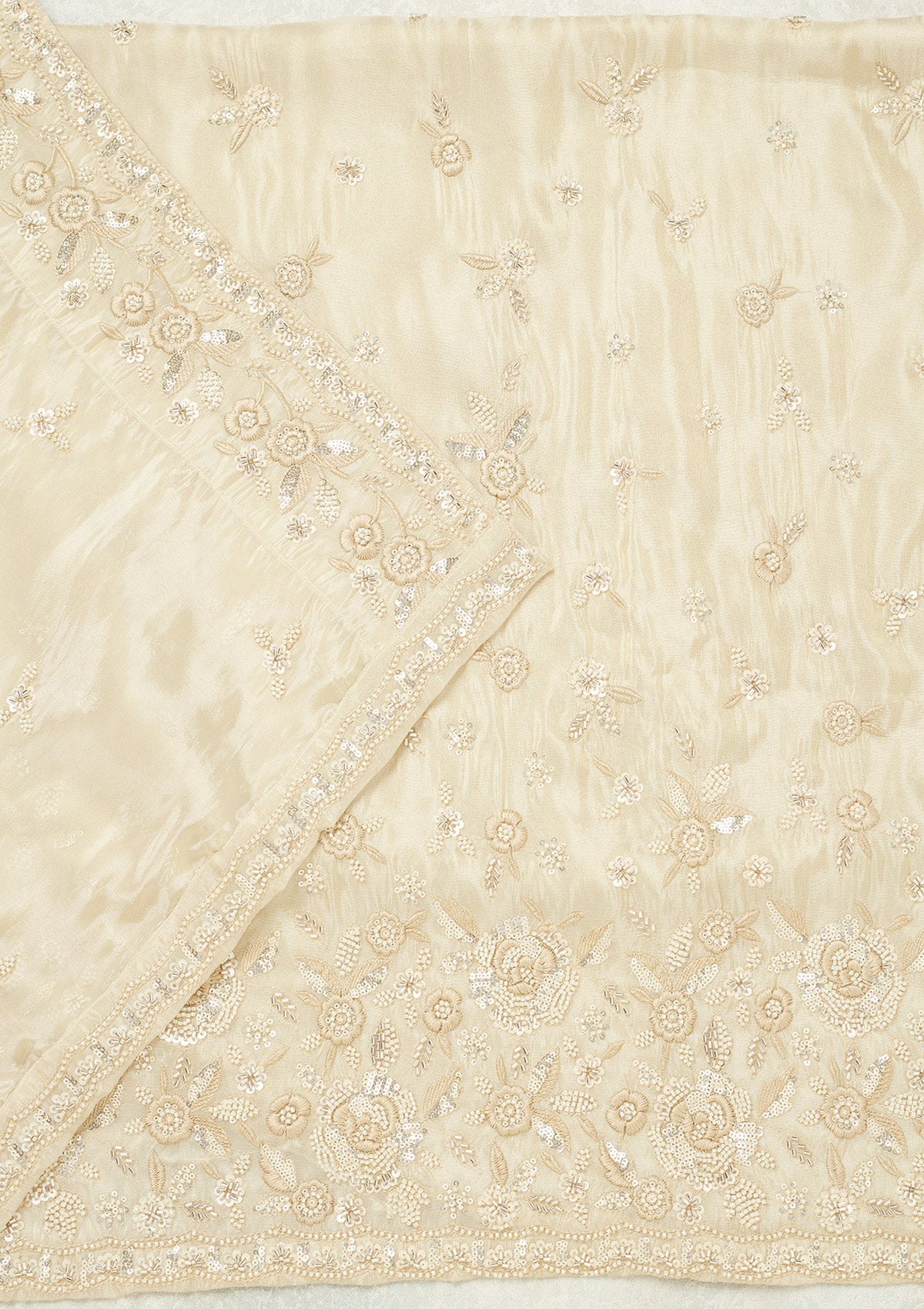 Cream Silver Stonework Tissue Unstitched Salwar Suit