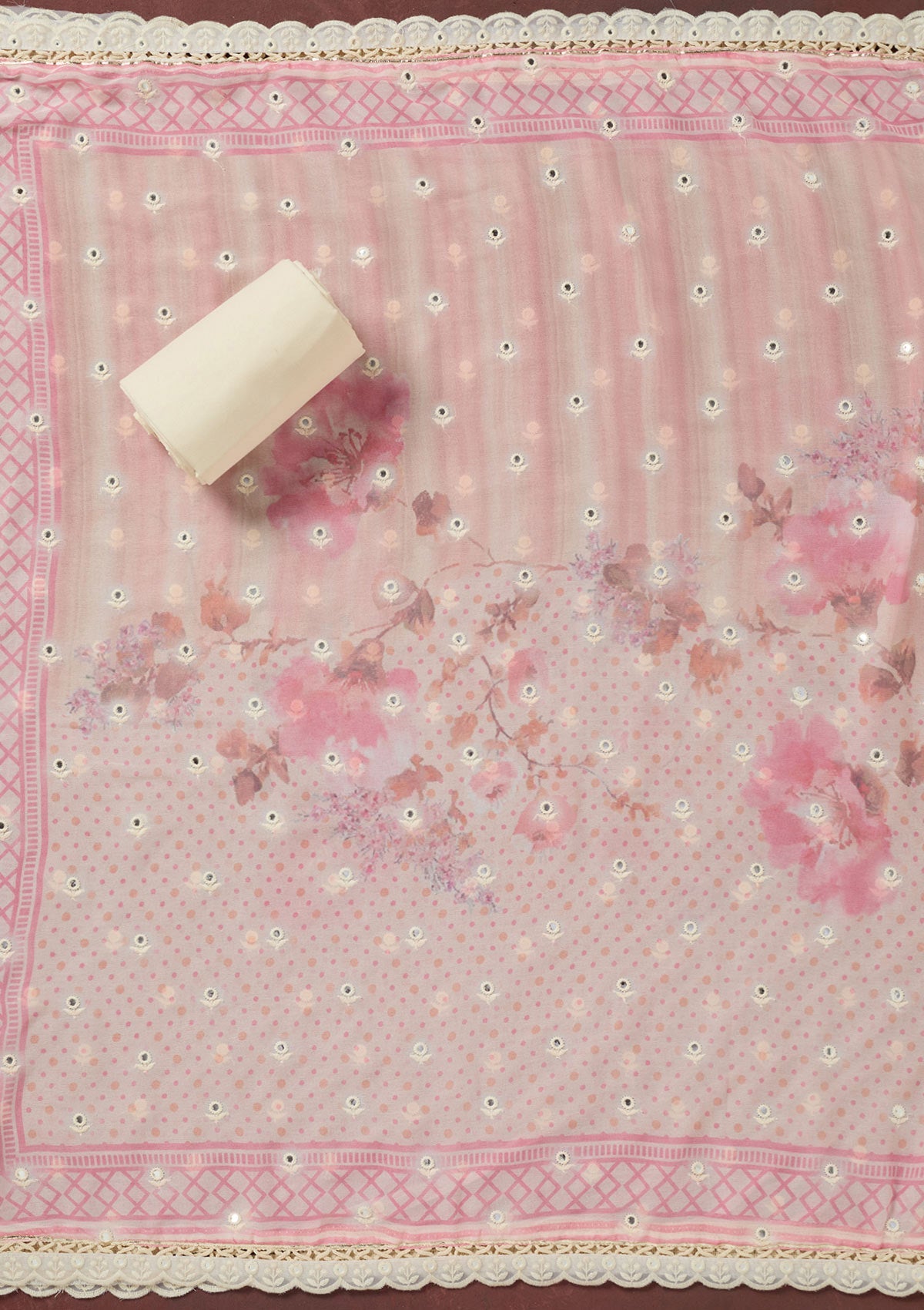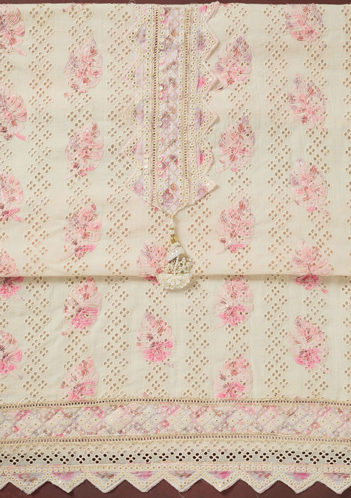 Cream Threadwork Cotton Unstitched Salwar Suit
