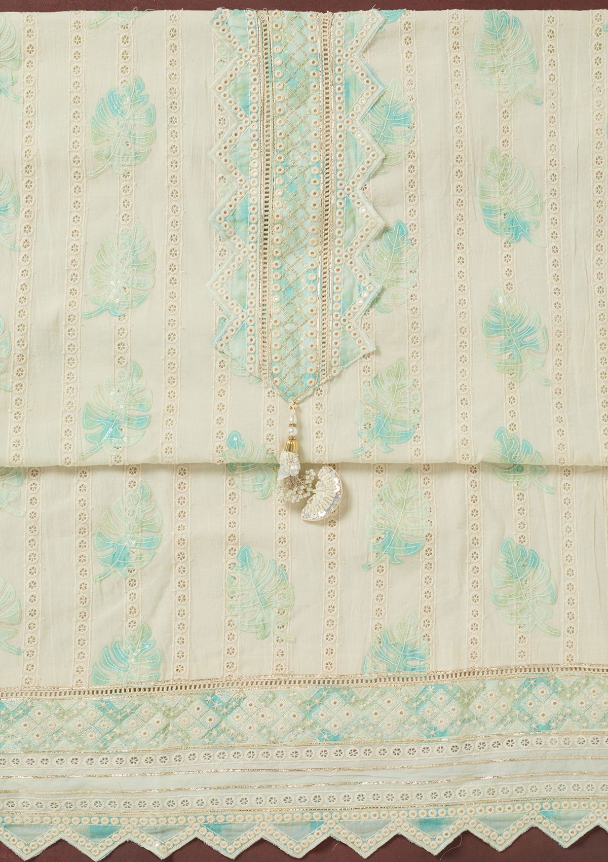 Cream Threadwork Cotton Unstitched Salwar Suit