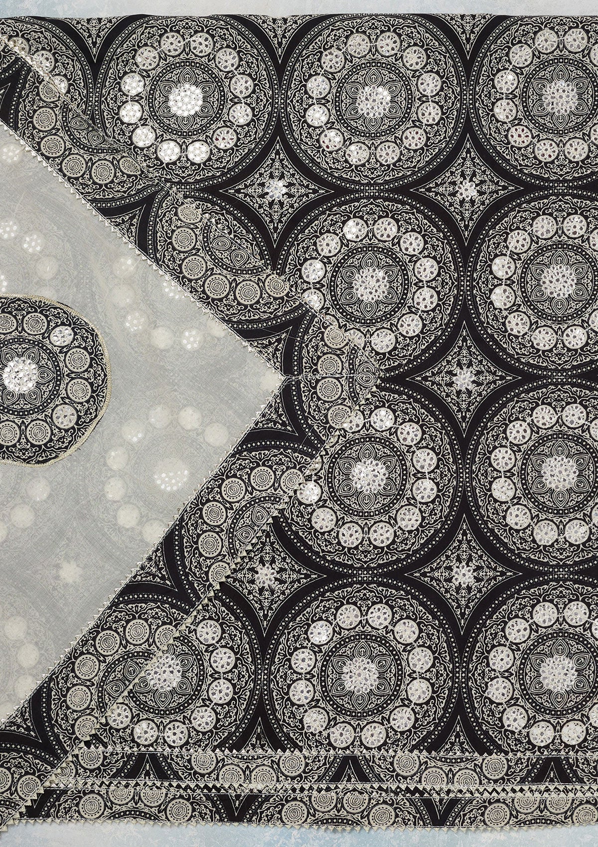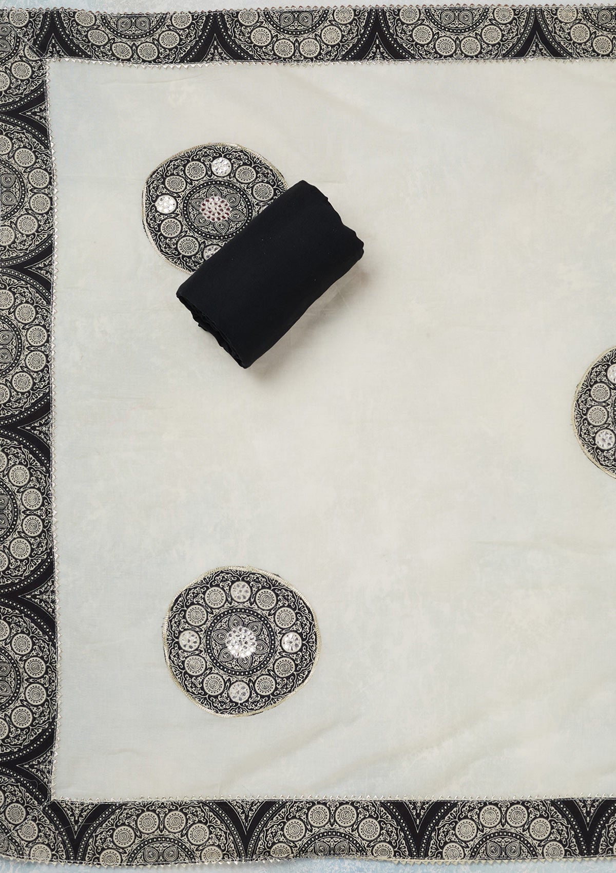 Cream Threadwork Cotton Unstitched Salwar Suit