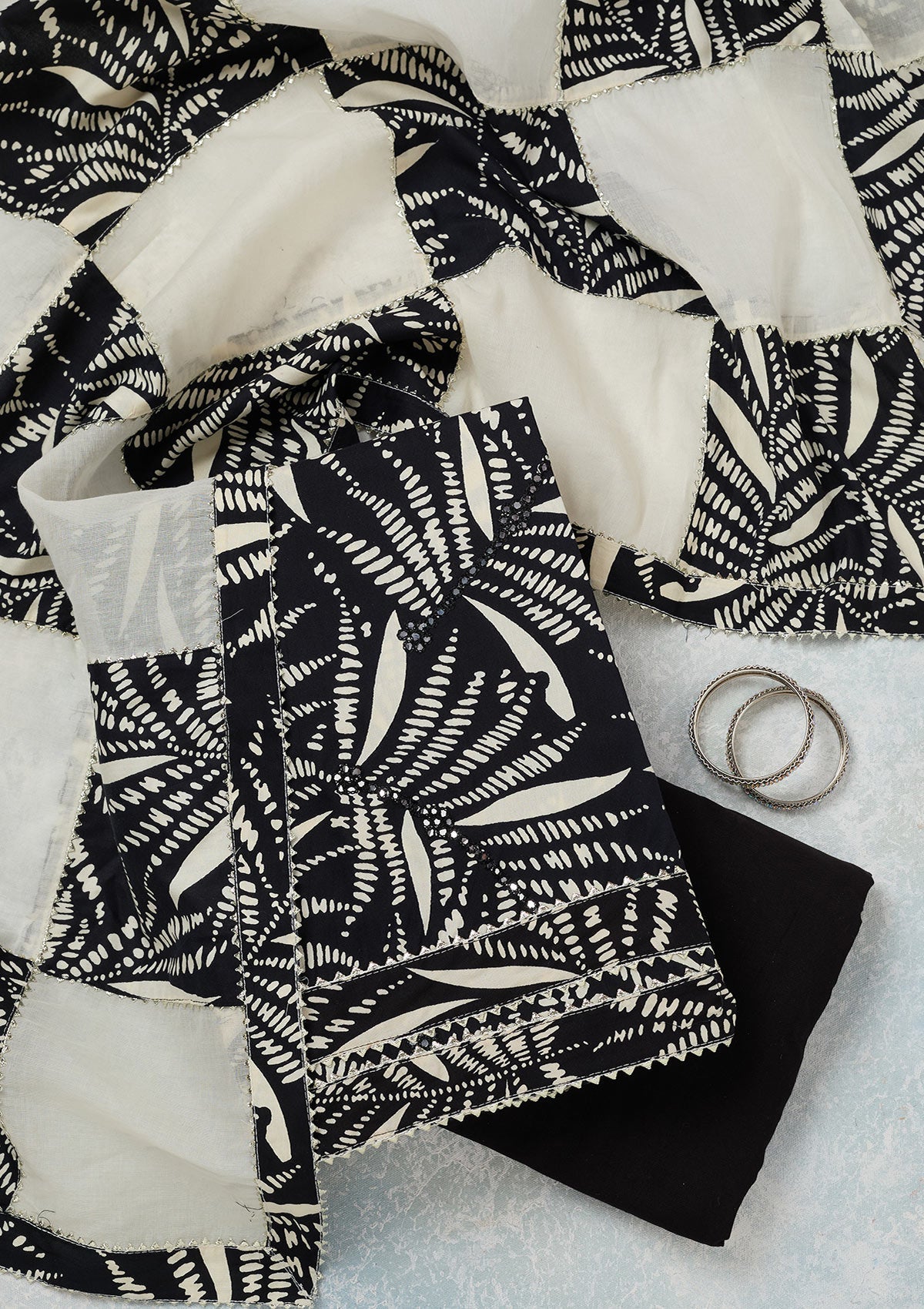 Cream Threadwork Cotton Unstitched Salwar Suit