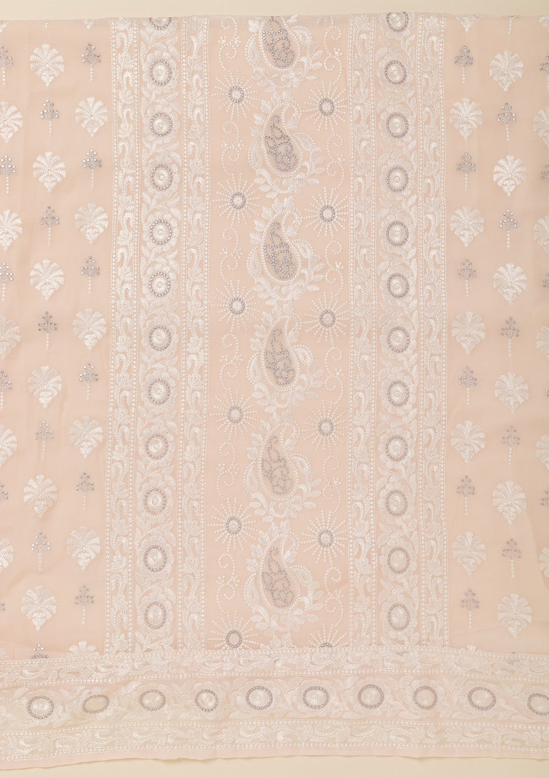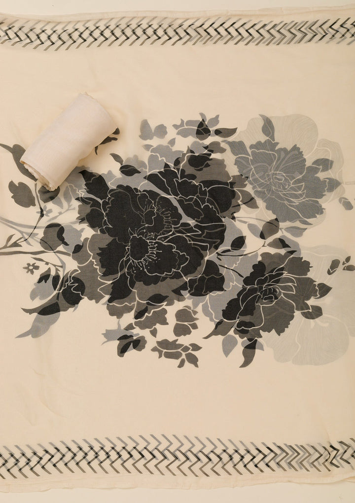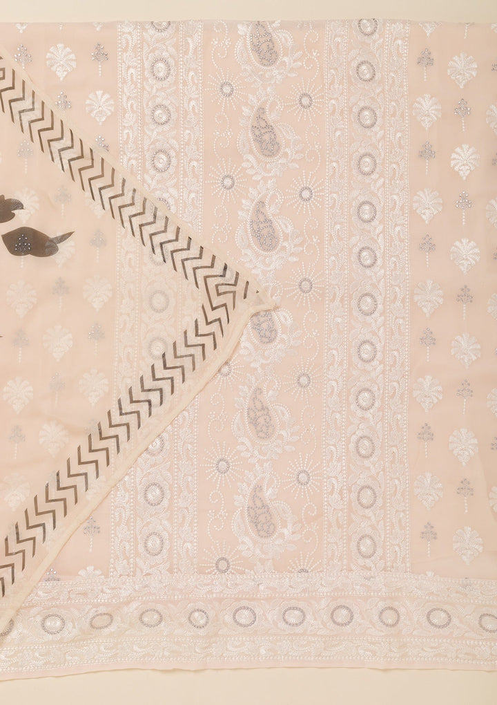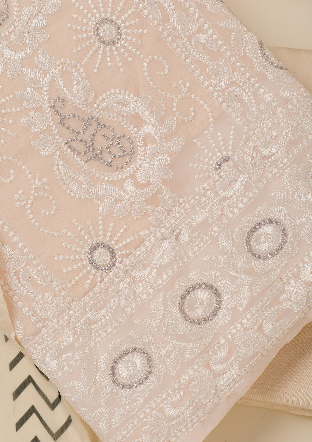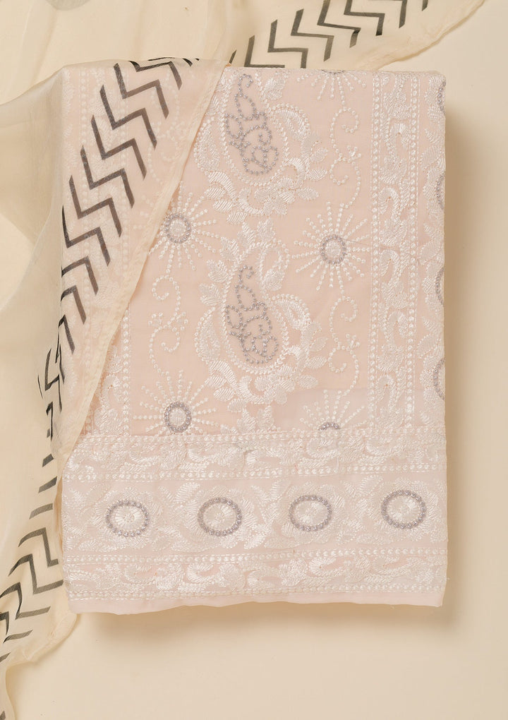 Cream Threadwork Georgette Unstitched Salwar Suit