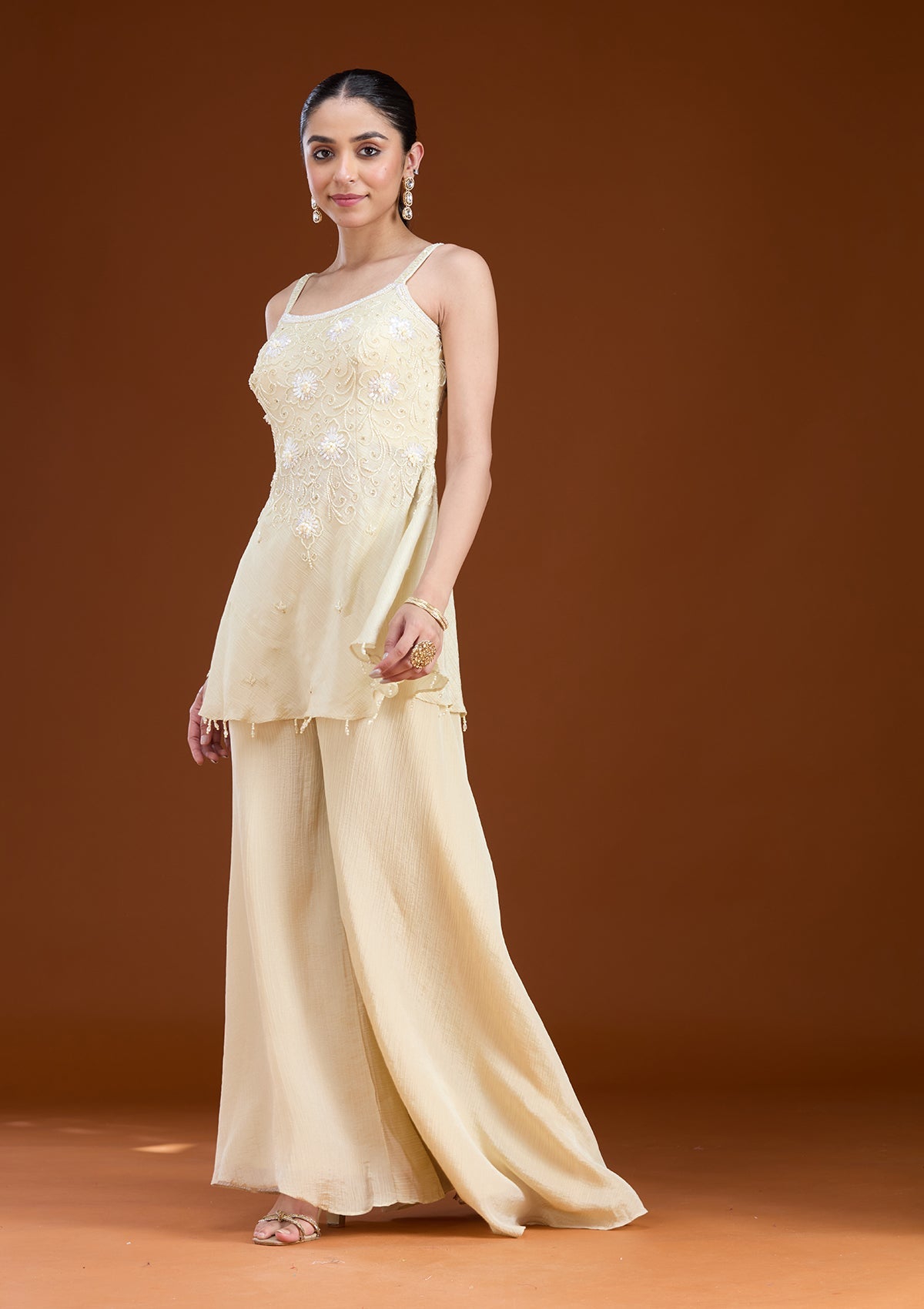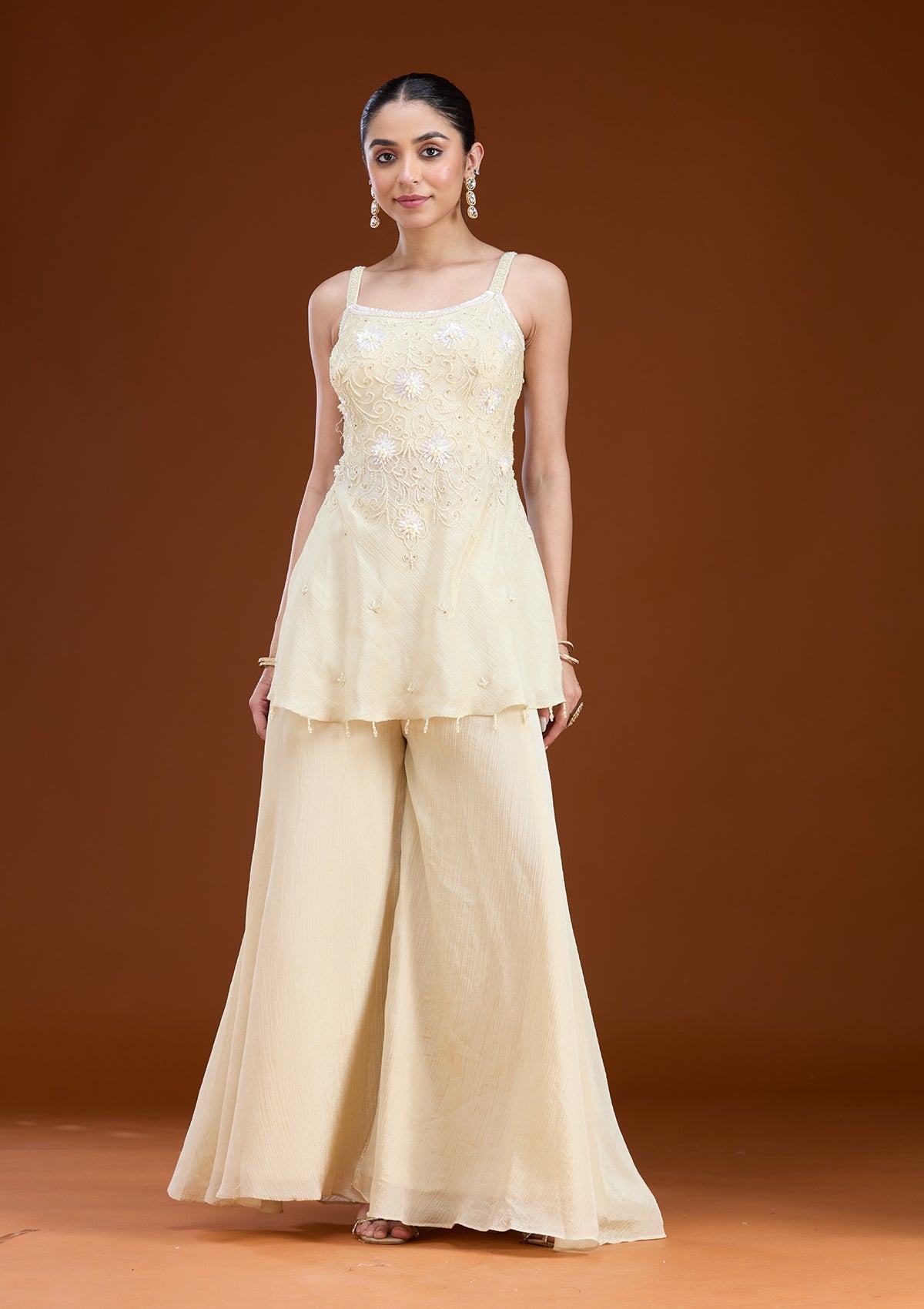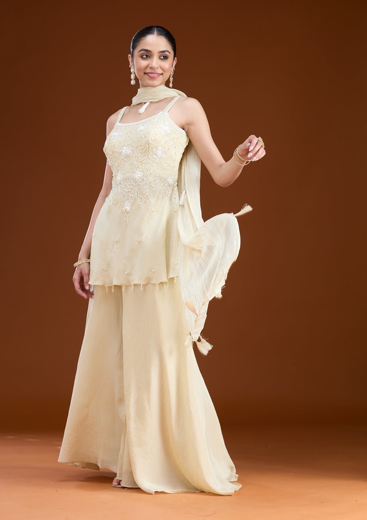Cream Salwar_RM in Tissue fabric. The Salwar_RM is embellished with Threadwork embroidery. Accompanied with a bottom and dupatta. Comes with the Koskii promise of premium quality.