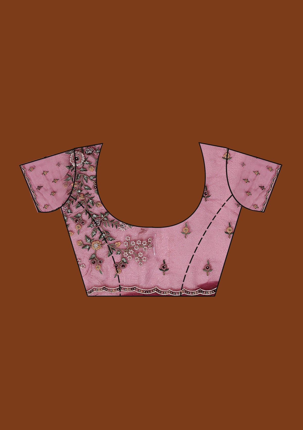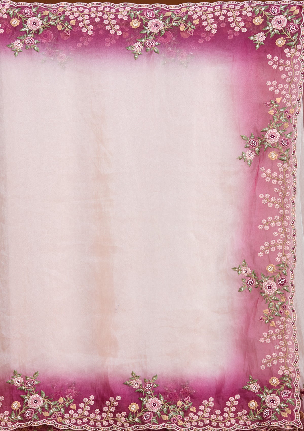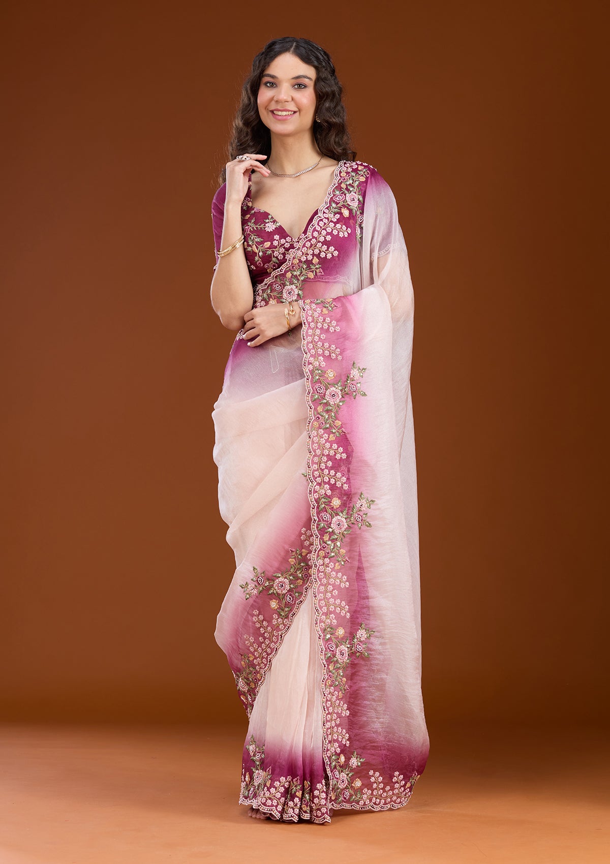 Cream Saree in Tissue fabric. The Saree is elevated with Threadwork embroidery. It comes with an Unstitched blouse. Comes with the Koskii promise of premium quality.